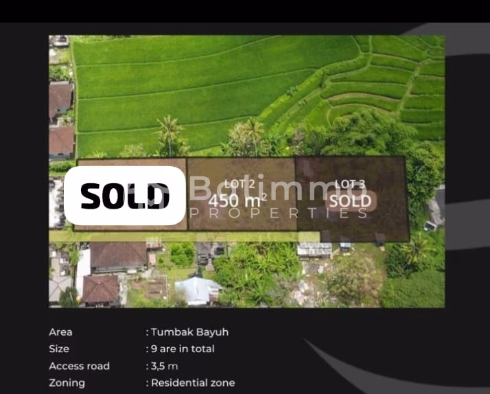 Located in a quiet villa neighborhood of Tumbak Bayuh, this plot offers 3.5-meter-wide road access and overlooks beautiful rice fields. The area is peaceful yet conveniently close to Pererenan and Canggu, making it ideal for long-term investment or residential projects. Perfect for building a private villa or rental property. The land is situated in a residential (yellow) zone, offering strong development potential with scenic rice field views. Key details : • Leasehold for 30 years • Land zone: Yellow zone (residential) • Permit : Hak Milik • Total size 4,5 are • Price : IDR 17.490.000 / are / year BALIMMO PROPERTIES – Contact us for more information