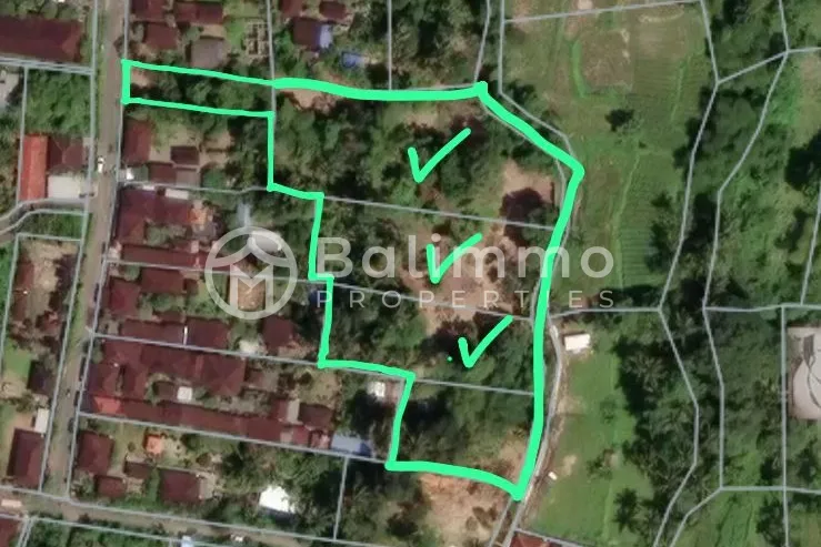 Located in Kengetan, just 15 minutes from central Ubud, this land is set in a quiet and green environment surrounded by established villas. The area offers open rice field views and borders a small natural river, creating a peaceful atmosphere suitable for residential or wellness projects. Access to the property is via a 10-meter-wide road under Right of Use, ensuring comfortable entry. Three plot options are available: 13 are, 16 are, and 24.5 are. The land is classified in a yellow zone, allowing development. Its natural surroundings, scenic outlook, and gentle landscape make it well suited for a private villa, boutique retreat, or investment project. The setting combines privacy with proximity to restaurants, shops, and services in Ubud. Key details : • Land zone: Yellow zone (residential) • Permit : Hak Milik • Total size 53,5 are • Price : IDR 6.496.000 / are / year • Leasehold for 30 years BALIMMO PROPERTIES – Contact us for more information.