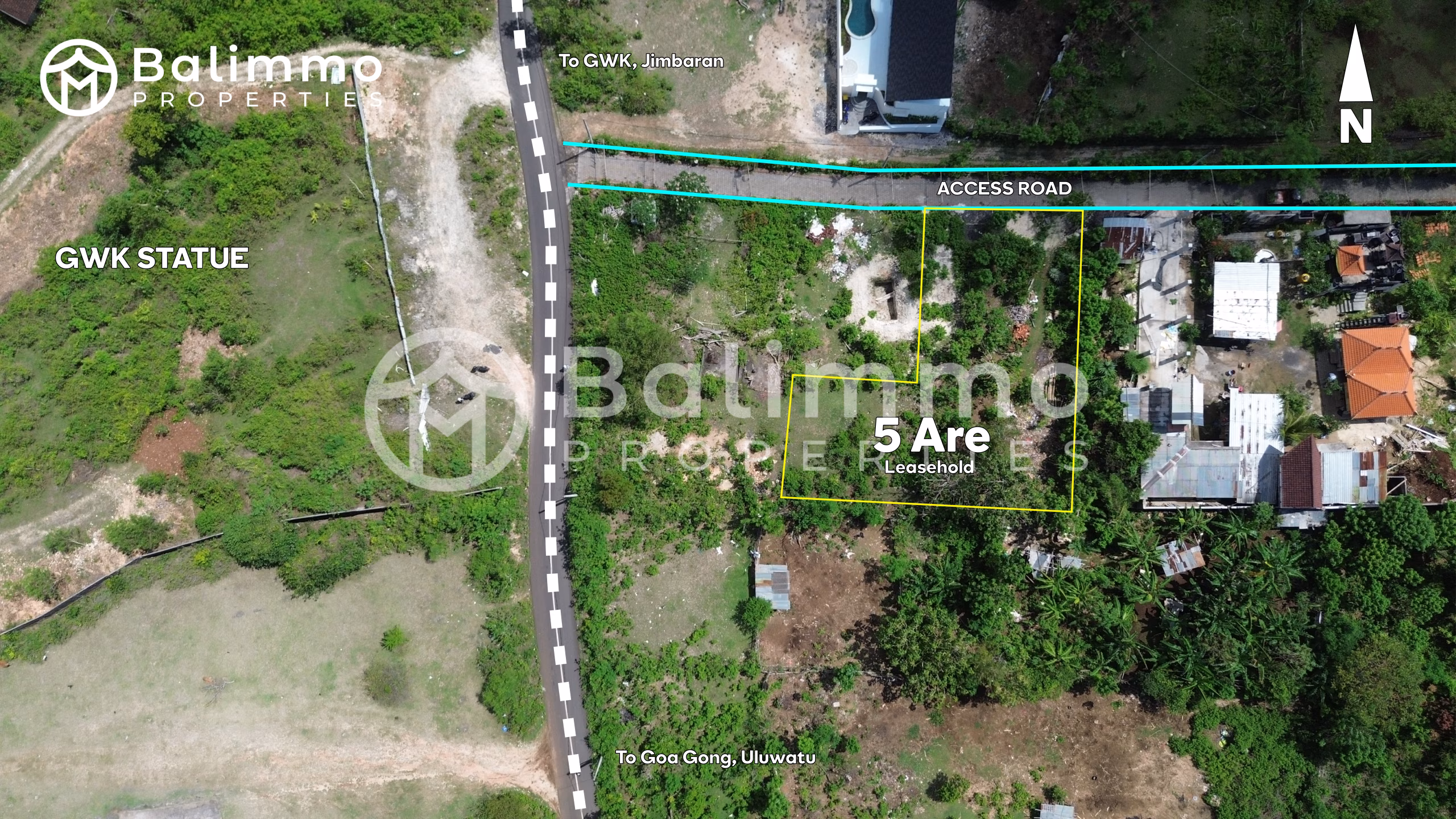 5 are available for lease (50 m length x 10 m width). Located in Ungasan, this plot offers a strategic position with easy road access. The area is developing quickly while maintaining a peaceful residential atmosphere. Just a short drive to shops, cafes, and beaches, the land also enjoys a direct view of the iconic Garuda Wisnu Kencana (GWK) statue. This rectangular plot is ideal for building a private villa or a profitable investment project. With a 25-year leasehold, the land provides long-term security. Its flat surface makes construction straightforward, while the location offers excellent potential for capital growth. Key details : • Land zone: Yellow zone (residential) • Permit : Hak Milik • Price : IDR 13.050.000 / are / year • Leasehold for 25 years BALIMMO PROPERTIES – Contact us for more information.