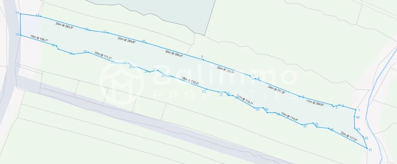Located in Seseh, this plot offers open rice field views in a peaceful rural setting. The land borders a natural river and is accessible through a 3-meter-wide road, providing easy entry while maintaining a quiet atmosphere. Surroundings include villas. Daily amenities, beaches, and cafés are reachable within a short drive. Details: Land size : 12 are (1,200 m²) Width : 17 meters Zone : Pink Zone (suitable for touristic accommodation development) Certificate : SHM (Hak Milik) Price per are per year: IDR 24,000,000 Road access : 3 meters Splitable : 800 m² / 8 are View : River and rice field BALIMMO PROPERTIES – Contact us for more information.