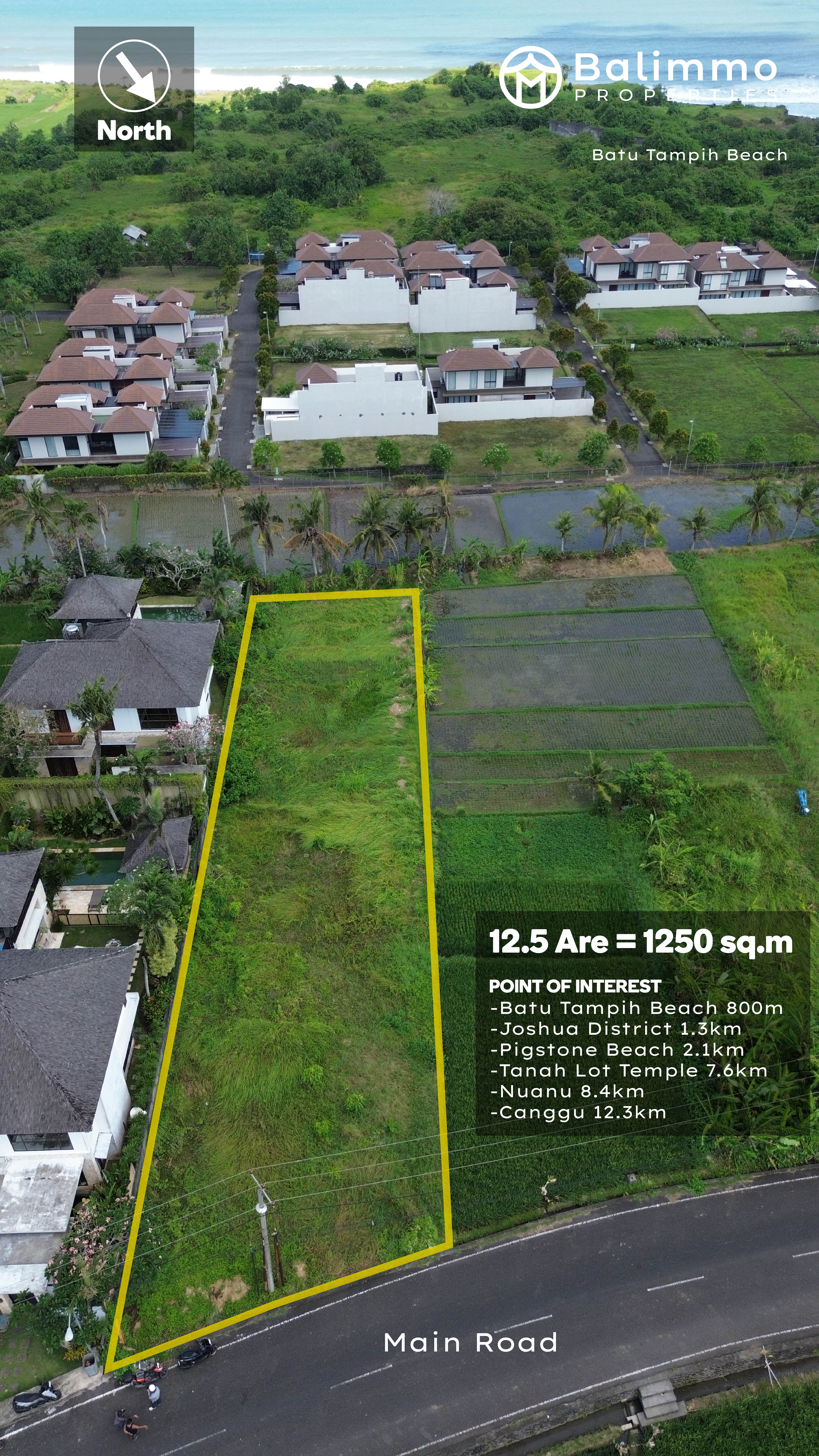 Located in the highly sought-after area of Pangkung Tibah, this exclusive plot is close to the beach and the prestigious Ciputra Beach Resort project. The neighborhood offers a blend of serene coastal charm and easy access to emerging lifestyle destinations. Within minutes, you can reach popular attractions such as Kedungu Beach (9 minutes), Joshua District (4 minutes), Project Potato Head (6 minutes), Bali Beach Glamping (5 minutes), Pigstone Beach (8 minutes), and Yeh Ganga Beach (10 minutes). The area is poised for strong growth, making it an excellent location for both private and commercial development. Situated in the Pink Zone (tourism zone), the land is ideal for building a villa complex, boutique holiday rentals, or other tourism-related projects. Its generous size allows for flexible design options, while the freehold tenure offers long-term security for investors. Proximity to upcoming high-profile projects further enhances the land’s value and investment appeal. Key details : • Land zone: Yellow zone (residential) • Permit : Hak Milik [ 2 certificates ] • Price : IDR 800.718.000 / are • Freehold BALIMMO PROPERTIES – Contact us for more information.