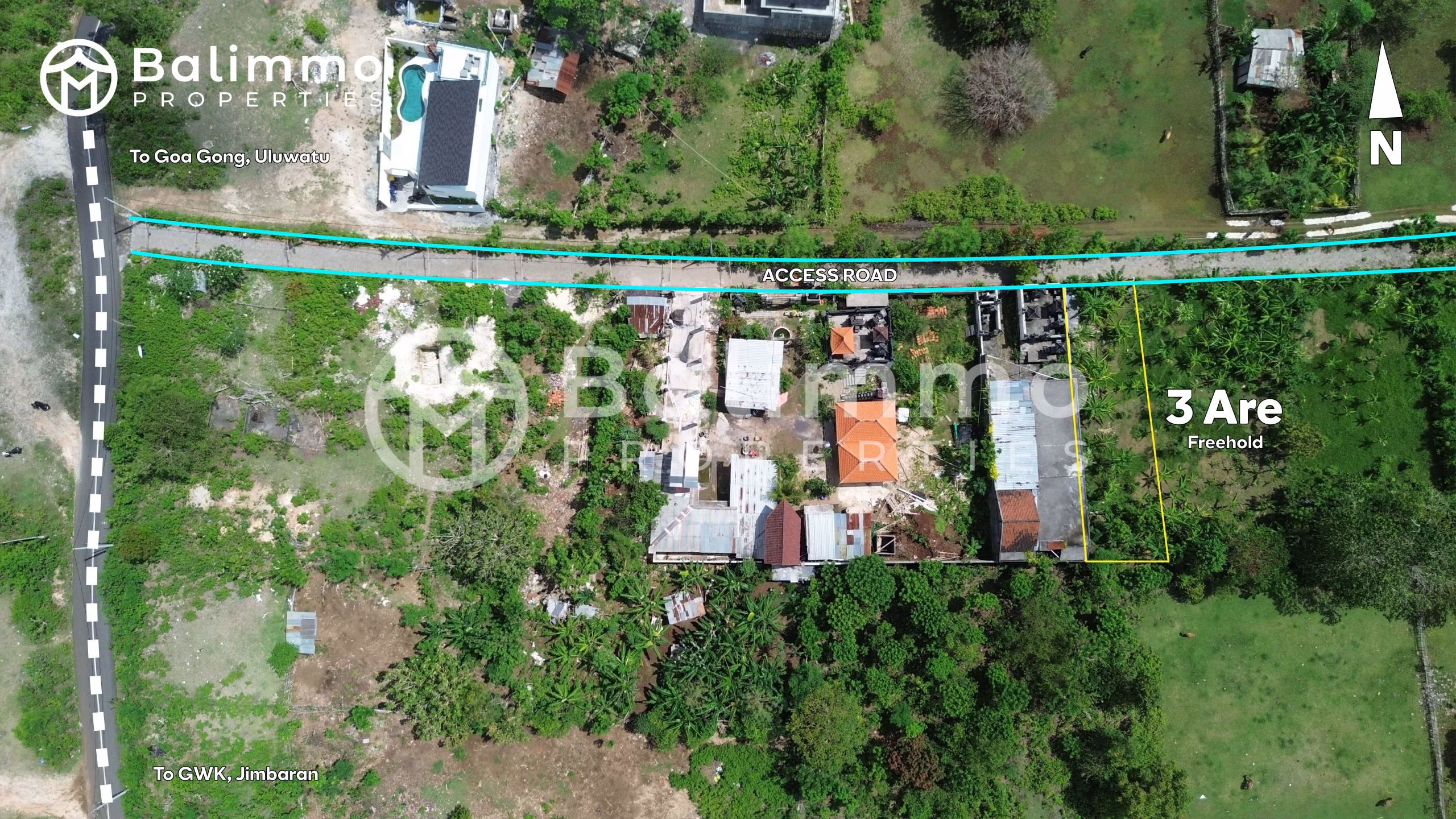 The land is located right beside Garuda Wisnu Kencana (GWK), one of Bali’s most visited cultural landmarks. The area offers convenient access to main roads and amenities, making it attractive for residential or investment purposes. The plot measures 9.5 meters frontage by 31.5 meters depth, providing a rectangular shape suitable for development. With SHM (freehold title), this land ensures secure ownership. The flat surface and strategic location make it ideal for a private villa or commercial project. Key details : • Land zone: Yellow zone (residential) • Permit : Hak Milik • Price : IDR 592.185.000 / are • Freehold BALIMMO PROPERTIES – Contact us for more information.