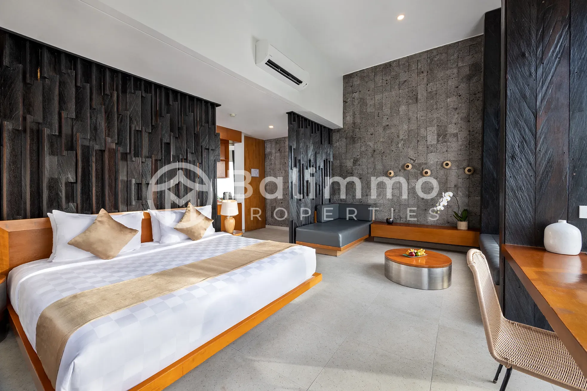 This exquisite one-bedroom pool suite in the prestigious area of Uluwatu is a secondary market property offers the perfect blend of tropical luxury, privacy, and investment potential. Featuring a generous 65 sqm layout with a spacious bedroom, modern bathroom with semi-open design, and a private plunge pool, the villa embodies contemporary Balinese architecture that harmonizes indoor-outdoor living, natural materials, and abundant natural light. Located in the sought-after Pecatu area, the property is just minutes away from world-renowned surf breaks, iconic beach clubs, the majestic Uluwatu Temple, and pristine clifftop beaches—making it an ideal choice for both discerning homeowners and savvy investors. Its intimate yet functional layout and resort-style amenities ensure exceptional guest experiences, while its prime location guarantees high occupancy rates and strong capital appreciation. Perfect for investors or lifestyle buyers seeking an entry point into Bali’s luxury market, this freehold villa captures the essence of secluded tropical living in one of the island’s most exclusive neighborhoods. A rare opportunity to own a turn-key property with Freehold certificate (SHM) that combines modern design, unmatched location, and proven rental appeal at an accessible price point. Key Details • Ownership: Freehold (Hak Milik) • Land zone : • Land size: 75 sqm • Building size: 65 sqm • Bedrooms: 1 • Bathrooms: 1 ensuite • Concept: 4-star managed resort • Usage: Residential or investment • Operational & maintenance costs: Covered by management • Price IDR 2.000.000.000 BALIMMO PROPERTIES – Contact us to schedule a visit.
