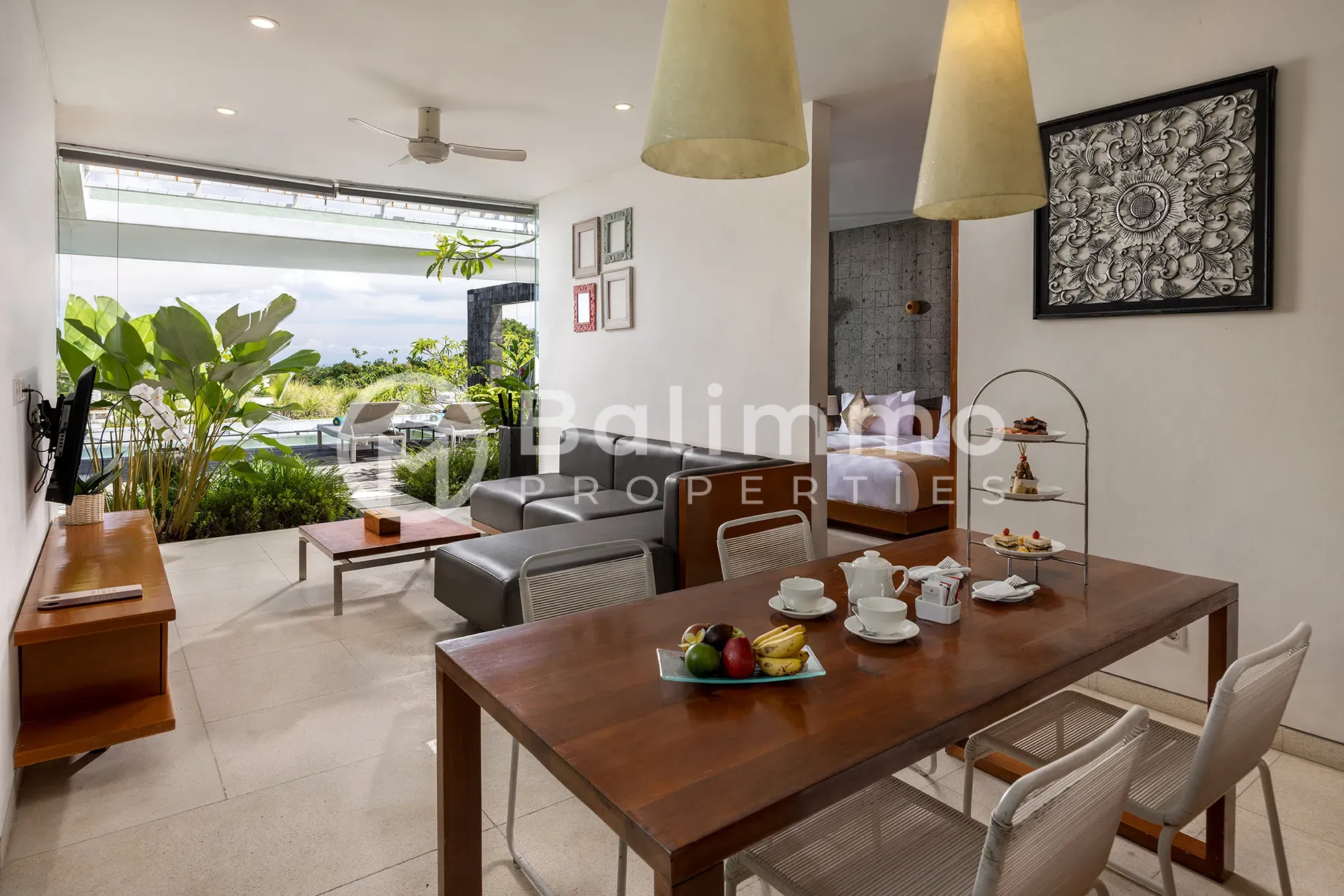 This exceptional Two Bedrooms Panoramic Pool Villa is a secondary market property standout property in the thriving Uluwatu real estate market, offering a powerful combination of elevated tropical living, modern luxury, and investment appeal. Perfectly positioned within the prestigious Hideaway Villas Bali enclave, this villa promises panoramic views, seamless indoor–outdoor flow, and a lifestyle of tranquility close to Bali’s most iconic destinations. Situated in the sought-after Pecatu area within the Kanaan Land development, this villa is only minutes from world-renowned surf breaks, pristine beaches, upscale beach clubs, and cultural attractions—making it an excellent choice for investors and lifestyle buyers alike. Its strategic location ensures strong rental demand and future capital appreciation. Perfect for those seeking a premium tropical home or a high-performing investment in Bali’s property market, this freehold villa comes with a Hak Milik (SHM) certificate and offers a rare opportunity to own a ready-to-use asset with stunning panoramic views, thoughtful design, and lasting value. Key Details • Ownership: Freehold (Hak Milik) • Land zone : Yellow zone • Land size: 187,65 sqm • Building size: 127 sqm • Bedrooms: 2 • Bathrooms: 2 • Concept: 4-star managed resort • Usage: Residential or investment • Operational & maintenance costs: Covered by management • Price IDR 3.500.000.000 BALIMMO PROPERTIES – Contact us to schedule a visit.