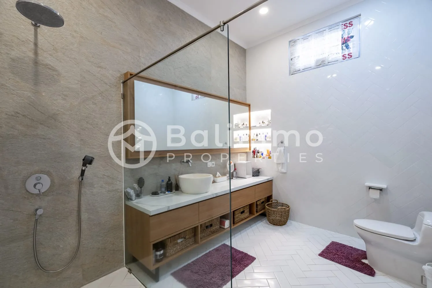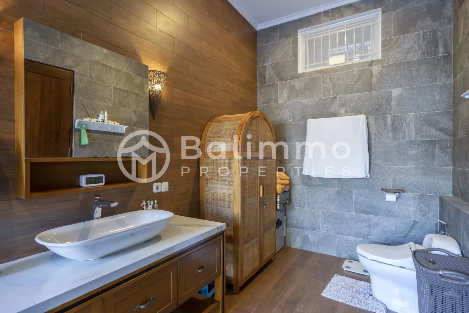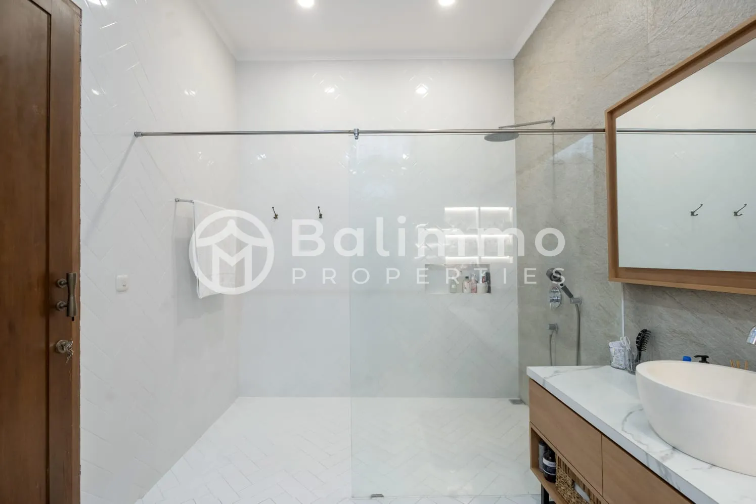 A spacious single-level villa located in the prime area of Berawa, Canggu. Surrounded by villas, restaurants, and lifestyle destinations, this property offers both comfort and convenience in one of Bali’s most sought-after neighborhoods. With generous land size, a large swimming pool, and complete facilities including staff rooms and garage, this villa is ideal for private living or rental investment. Location Highlights: • 5 minutes to Finns Recreation Club (Canggu Club) • 5 minutes to Atlas Beach Club • Close to Berawa Beach, cafés, restaurants, and lifestyle venues Property Details: • Location: Berawa, Canggu – Bali • Land size: 600 m² (6 are) • Building size: ± 300 m² • Floors: 1 • Bedrooms: 3 • Bathrooms: 3 • Living room: Closed living area • Dining room • Kitchen • Large private swimming pool • Staff rooms: 2 • Storage room • Garage: 2 cars • Furnishing: Fully furnished • Electricity: 7,700 watts • Building permit: IMB • Access road: 4 meters paving • Ownership: Leasehold – 18 years remaining Price: IDR 6,300,000,000 BALIMMO PROPERTIES – Contact us for more information.