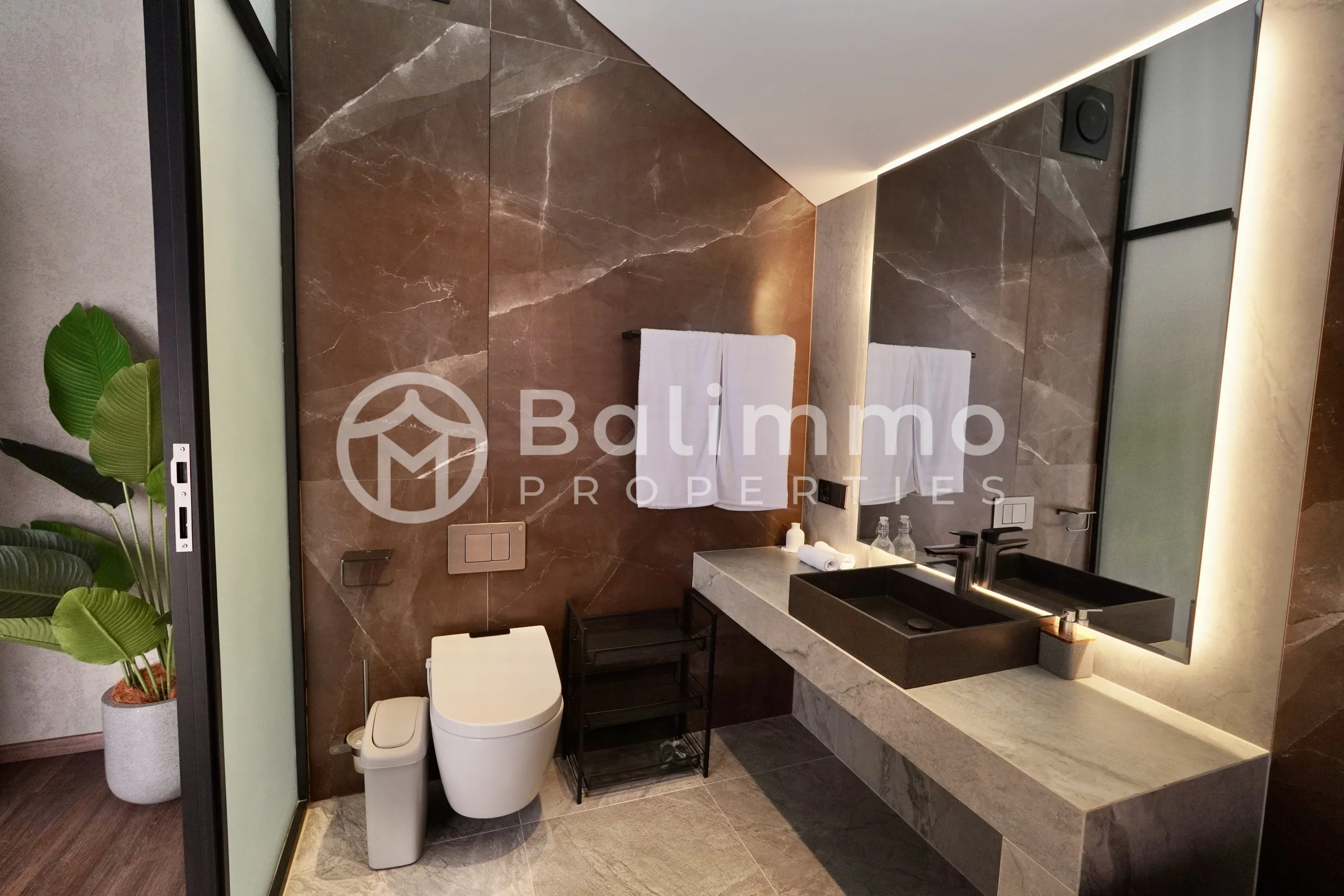 Blue Townhouse – 2 Bedroom Townhouse (Yellow Zone) Located in a quiet residential area, this townhouse offers convenient access to cafés, local shops, and main roads, creating a calm environment ideal for long-term living. The neighborhood is just 3 minutes from Nook, 4 minutes from 7AM Bakers, 5 minutes from Satu Satu Coffee, 6 minutes from Liga Tennis Center, and 7 minutes from Soham Wellness, ensuring a comfortable and well-connected daily routine. Set on 90 m² of land, the property features a private pool with a pool deck, durable materials, and an easy-care garden. The architecture is practical, modern, and designed for low maintenance. The 105 m² building benefits from abundant natural light, cross ventilation, and a functional layout. The ground floor includes an open living area and a fully equipped kitchen, while the upper level offers two bedrooms with private bathrooms, built-in wardrobes, air conditioning, and premium fixtures. The townhouse is delivered fully furnished with Western-standard finishing. Additional Information Leasehold: 30 years + 30-year extension Zoning: Yellow Zone (Residential) Permits: SLF / PBG Bedrooms: 2 Bathrooms: 2 BALIMMO PROPERTIES – Contact us to schedule a visit.