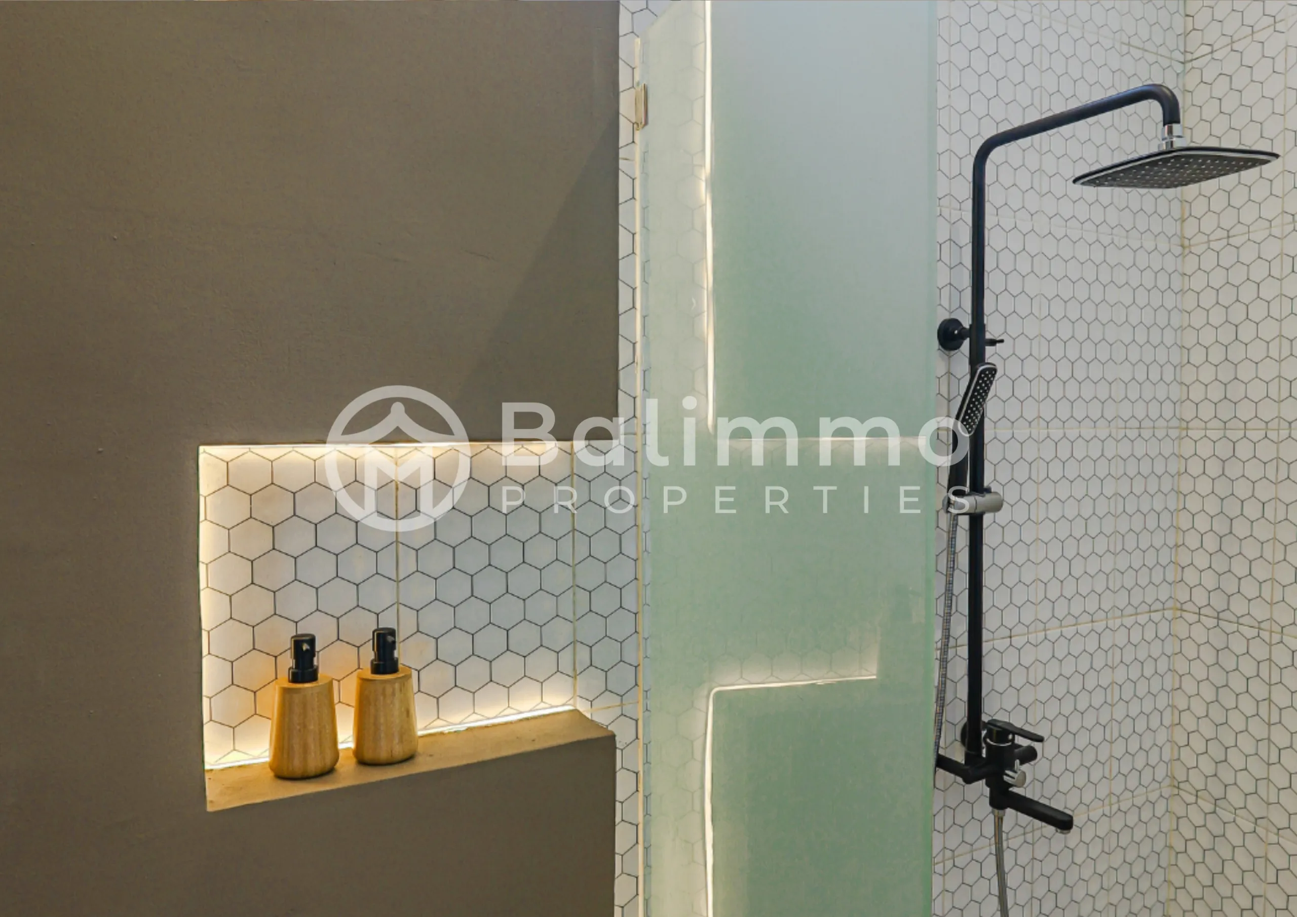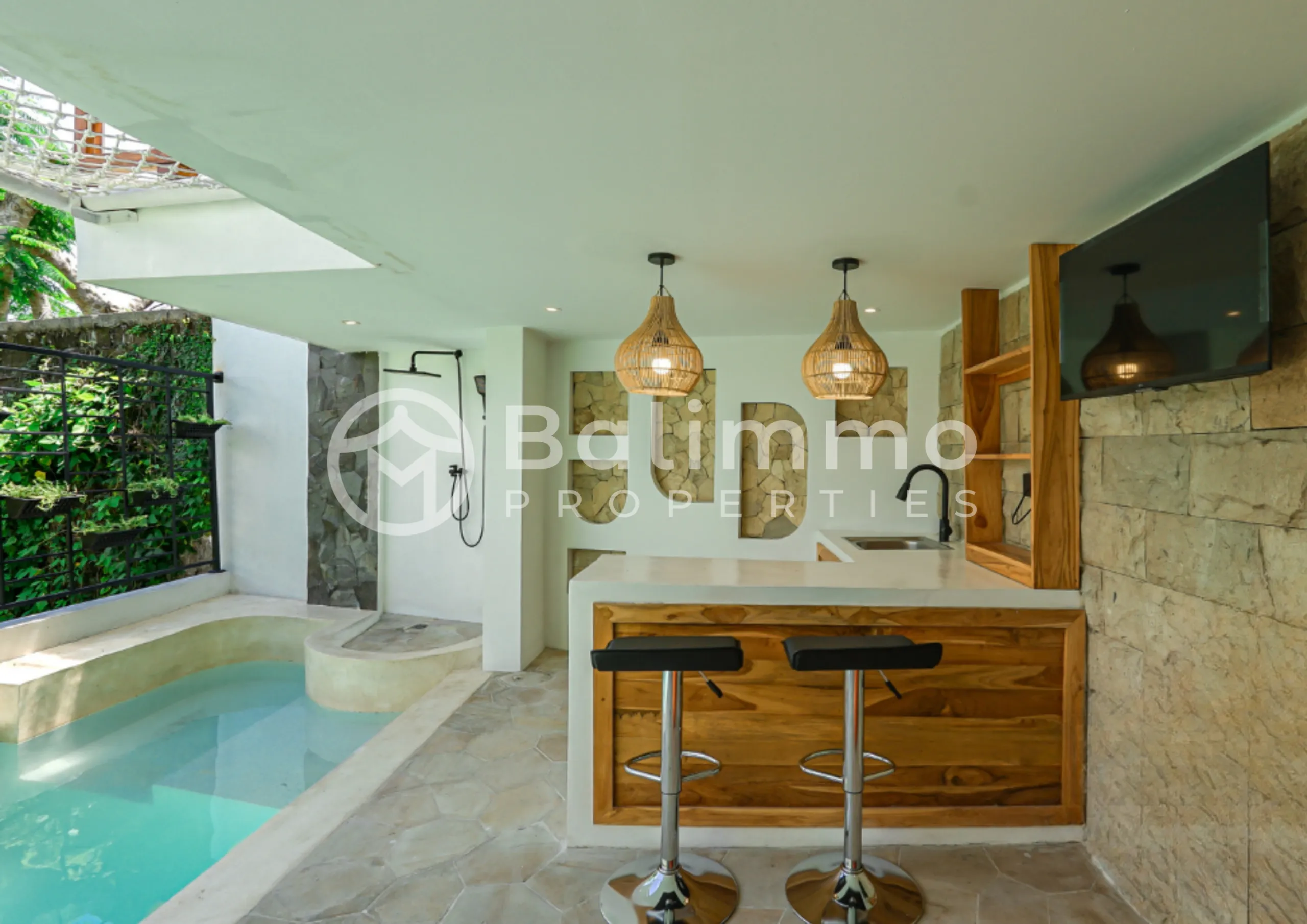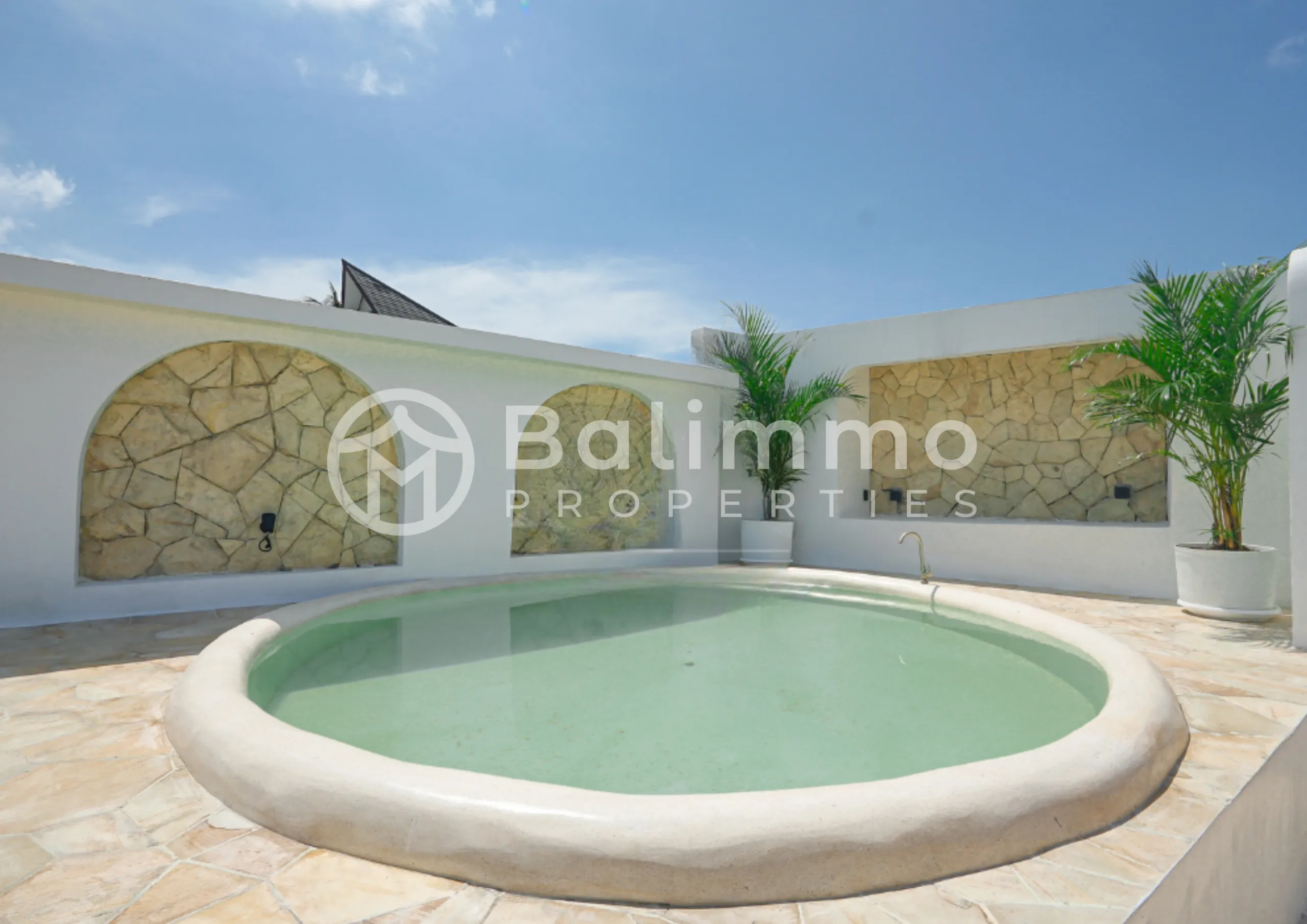 Pecatu – Two-Bedroom Tropical Villa Located in Pecatu, Uluwatu, in a quiet residential area with easy access to the region’s beaches. Labuan Sait is 5 minutes away, while Nunggalan and Padang Padang beaches are approximately 10 minutes. Daily amenities, cafés, and lifestyle spots are within short driving distance. Set on 101 sqm of land, the villa features a private pool on the lower level with a sunbathing area. The rooftop lounge includes a large whirlpool and an open terrace offering 360-degree views over Pecatu. Modern multi-level architectural design with a compact layout suited for rental or residential use. Interior The 181 sqm building includes two bedrooms, each with an en-suite bathroom and bathtub. The living room, dining area, and modern kitchen are designed for comfortable daily use. The villa will be delivered fully furnished. Additional Information Leasehold: 25 years, with extension possible Yellow Zone PBG/SLF PERMIT BALIMMO PROPERTIES – Contact us to schedule a visit.