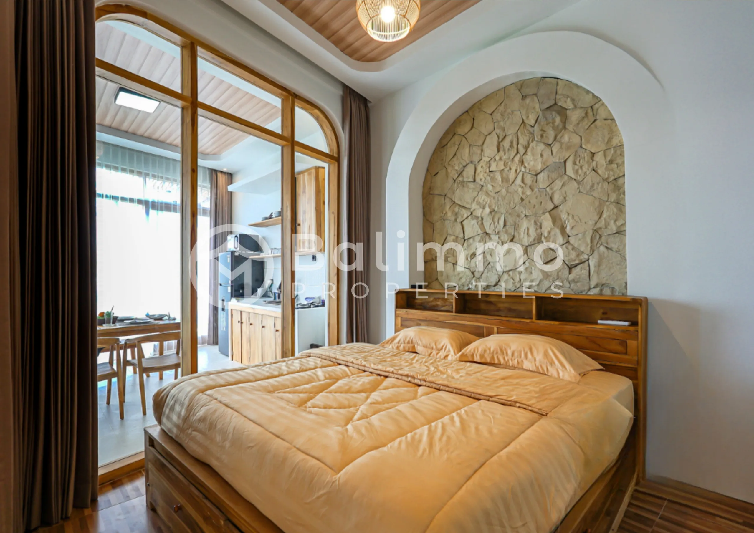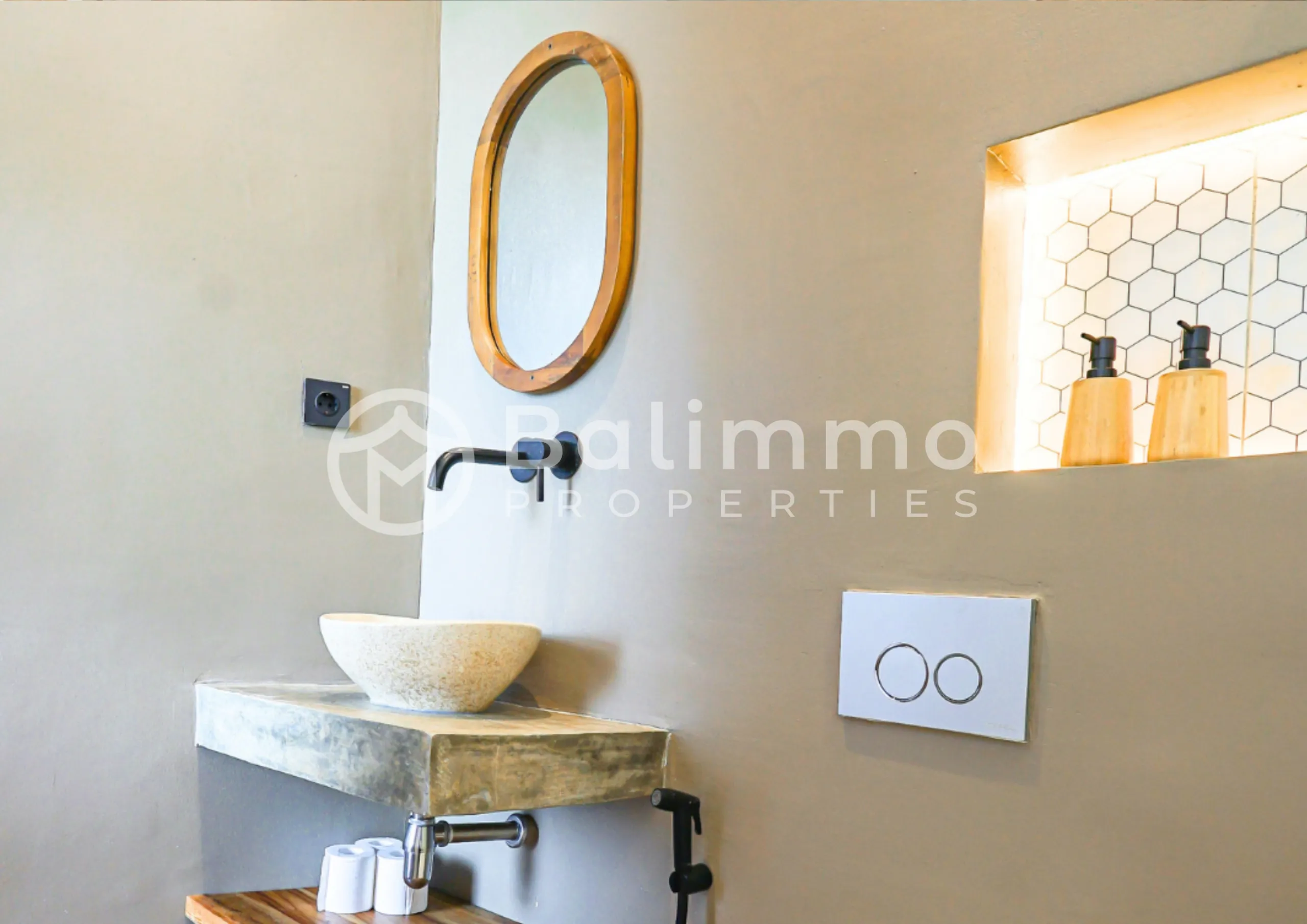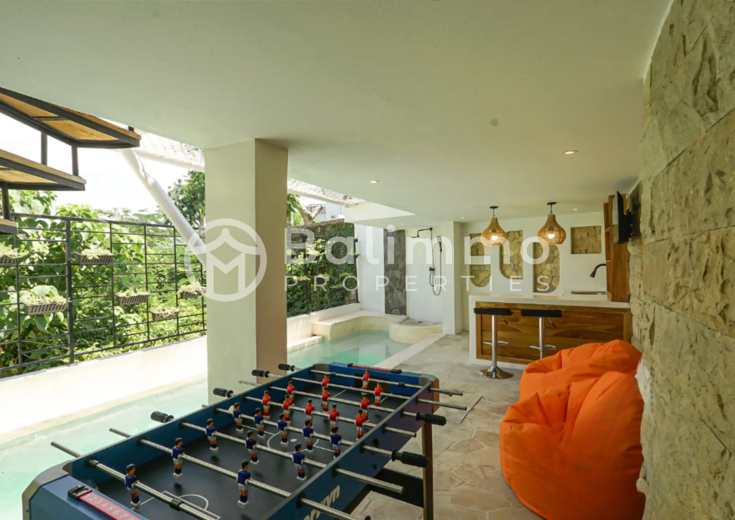 Pecatu – Two-Bedroom Tropical Villa Located in Pecatu, Uluwatu, in a quiet residential area with easy access to the region’s beaches. Labuan Sait is 5 minutes away, while Nunggalan and Padang Padang beaches are approximately 10 minutes. Daily amenities, cafés, and lifestyle spots are within short driving distance. Set on 101 sqm of land, the villa features a private pool on the lower level with a sunbathing area. The rooftop lounge includes a large whirlpool and an open terrace offering 360-degree views over Pecatu. Modern multi-level architectural design with a compact layout suited for rental or residential use. Interior The 181 sqm building includes two bedrooms, each with an en-suite bathroom and bathtub. The living room, dining area, and modern kitchen are designed for comfortable daily use. The villa will be delivered fully furnished. Additional Information Leasehold: 25 years, with extension possible Yellow Zone PBG/SLF PERMIT BALIMMO PROPERTIES – Contact us to schedule a visit.