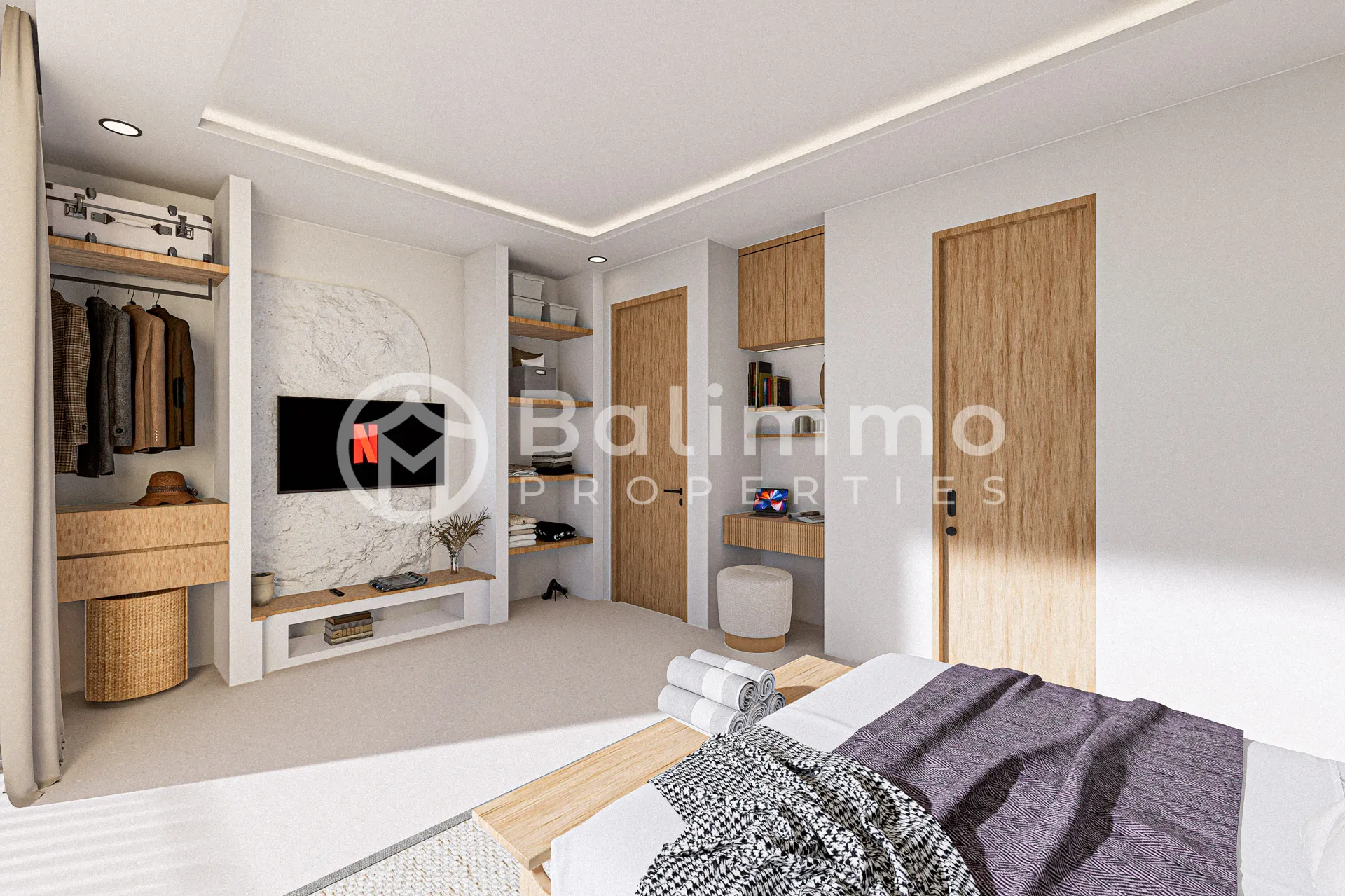 Located in Cemagi, this villa is set in a peaceful village surrounded by rice fields and just minutes from the beach. The area offers a calm residential atmosphere while benefiting from excellent access to key destinations. Cemagi Beach and Mengening Beach are approximately 3–5 minutes away, known for their natural setting, sunset views, surfing spots, and quiet yoga locations. Tanah Lot Temple is reachable within 10–12 minutes, while the Nirwana Bali / Pan Pacific area is about 10 minutes away, offering luxury resorts, a golf course, beach clubs, and upscale dining. Seseh Beach is around 8 minutes away, and the lifestyle hubs of La Brisa and Echo Beach Canggu can be reached in approximately 15–18 minutes. Pererenan and Batu Bolong Canggu are also about 15 minutes away, providing cafés, gyms, yoga studios, and co-working spaces. the exterior features a well-planned complex of 2-bedroom villas. Each unit includes a private swimming pool, landscaped outdoor areas, and a layout designed to ensure privacy within the compound. The interiors are fully furnished and designed for comfort and functionality, with organized living spaces, equipped kitchens, and bedrooms with en-suite bathrooms, suitable for both personal use and rental purposes. The villas are scheduled for completion in May. The complex is located in a yellow zoning area and is fully permitted with an IMB. The property is offered on a leasehold title with 26 years remaining, including a guaranteed extension. BALIMMO PROPERTIES – Contact us to schedule a visit.