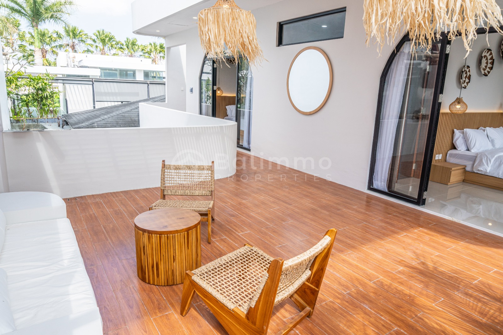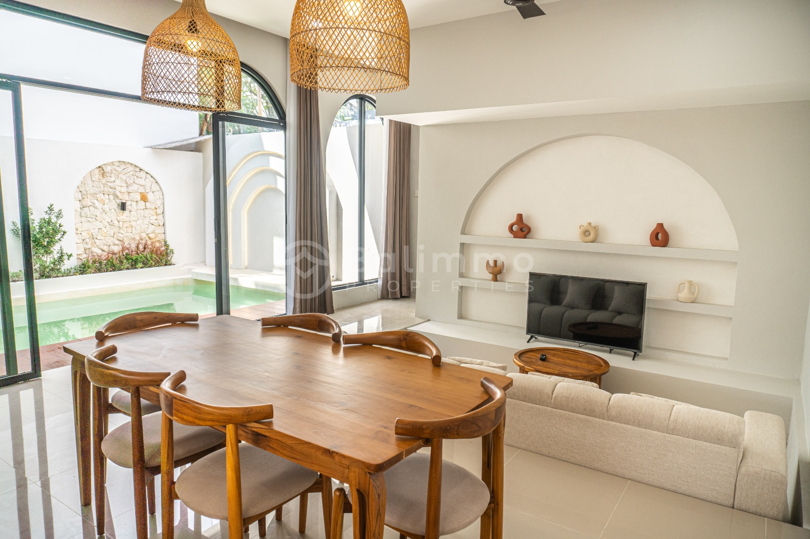 Located in the peaceful village of Tumbak Bayuh, this brand-new Villa Bliss Aura offers a perfect balance of tranquility and accessibility. Just a short drive from Pererenan and Canggu, the area is surrounded by modern residences while maintaining a serene atmosphere. Set on 135 m² of land, the villa features a private garden with a 3-meter swimming pool, ideal for relaxation and outdoor living. The property includes secure parking for one car or multiple motorbikes and is designed with clean modern architecture within a neighborhood of contemporary villas. Built in 2025, the villa spans 190 m² of living space across two levels. It offers three spacious en-suite bedrooms, a fully equipped modern kitchen, and comfortable living areas filled with natural light. The villa is fully furnished with stylish décor, ready for immediate occupancy. • Ownership: Freehold • Land size: 135 m² • Building size: 190 m² • Bedrooms: 3 en-suite • Year of completion: 2025 • Furnishing: Fully furnished • Swimming pool: 3 meters • Parking: 1 car or multiple motorbikes Key Details Zoning : Yellow Permit : Hak Milik Price : IDR 4.837.500.000 USD 293.181.000 This villa combines modern design, comfort, and convenience, making it an excellent choice for a private residence or a rental investment. BALIMMO PROPERTIES – Contact us to schedule a visit.