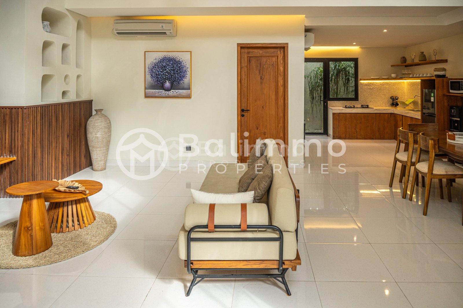 Modern 3-Bedroom Villa in Central Kerobokan – Leasehold 23 years Ideally located in Kerobokan, this villa is just a short walk from local shops, supermarkets, and restaurants. With easy access to Seminyak, Petitenget Beach, and iconic beach clubs like Ku De Ta and Potato Head, the property offers both convenience and lifestyle. Set on 125 sqm of land, the villa features a private 3 x 6 m swimming pool, a landscaped garden, and a secure parking area. The layout includes a fully enclosed living room, blending comfort and privacy in a compact, functional space. The 145 sqm building includes 3 bedrooms, each with its own bathroom. Fully furnished with wooden furniture and equipped with air conditioning, smart TV, kitchen appliances, and quality bedding, the villa is move-in ready. Leasehold 23 Years Land size: 125 sqm Building size: 145 sqm Fully furnished 3 Bedrooms 3 Bathrooms Closed Living Room Swimming Pool Year of construction : 2023 Zoning : Yellow Price : IDR 4.000.000.000 USD 250.000 BALIMMO PROPERTIES – Contact us to schedule a visit.