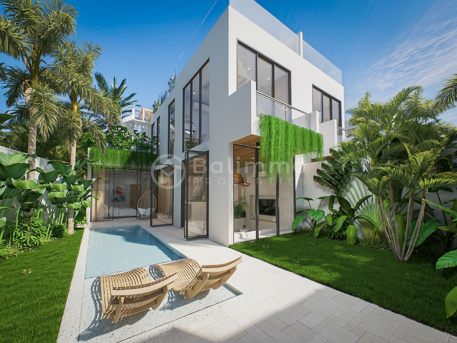 This brand-new villa is located in a secure residential complex in the Bumbak area, just a short walk from shops, restaurants, and a gym. The neighborhood is safe and well-situated, offering convenient access to Berawa, Batu Bolong, and Seminyak. The property includes a private swimming pool, garden, and parking area, all within a fully secured environment with 24-hour security. The architecture follows a clean, modern design suited to contemporary living. Inside, the villa features four bedrooms and four bathrooms, along with a closed living room. It is offered fully furnished and equipped with air conditioning, Wi-Fi, smart TV, and a complete kitchen setup. Land size: 150.78 m² Building size: 180.61 m² Furnishing: Fully furnished 4 Bedrooms 4 Bathrooms Closed living room Kitchen Equipment Swimming Pool Parking Area 24 Hours Security Leasehold 29 Years Price : IDR 6.100.000.000 USD 370.000
