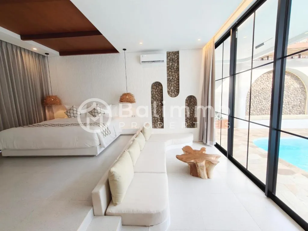 3 Bedroom Freehold Villa for Sale in Pecatu Ocean View Rooftop Brand new 3-bedroom freehold villa for sale in the highly desirable Pecatu area. This villa is located within a private complex of only 6 villas, offering comfort, privacy, and a peaceful environment. Designed in a modern Mediterranean style, the villa features a spacious rooftop with ocean views, ideal for sunset relaxation or entertaining guests. The villa was completed just one month ago and is in excellent condition. This property is perfect for private living or as a high-return investment, thanks to its prime location and strong rental demand in Pecatu. Prime Location: 10 minutes to Melasti Beach 15 minutes to Savaya Beach Club 15 minutes to Balangan Beach 15 minutes to Dreamland Beach 20 minutes to GWK Cultural Park 20 minutes to Uluwatu Temple 45 minutes to Ngurah Rai International Airport Villa Details: Land size: 257 sqm Building size: 237 sqm 3 Bedrooms 3 Bathrooms Swimming pool Closed living room Fully furnished Fully equipped kitchen WiFi installed Water heater Air conditioners in all rooms Legal & Zoning: Zoning: Yellow Title: Freehold Permit: ( SHM ) Asking Price : IDR 7,700,000 ,000 BALIMMO PROPERTIES – Contact us to schedule a visit.