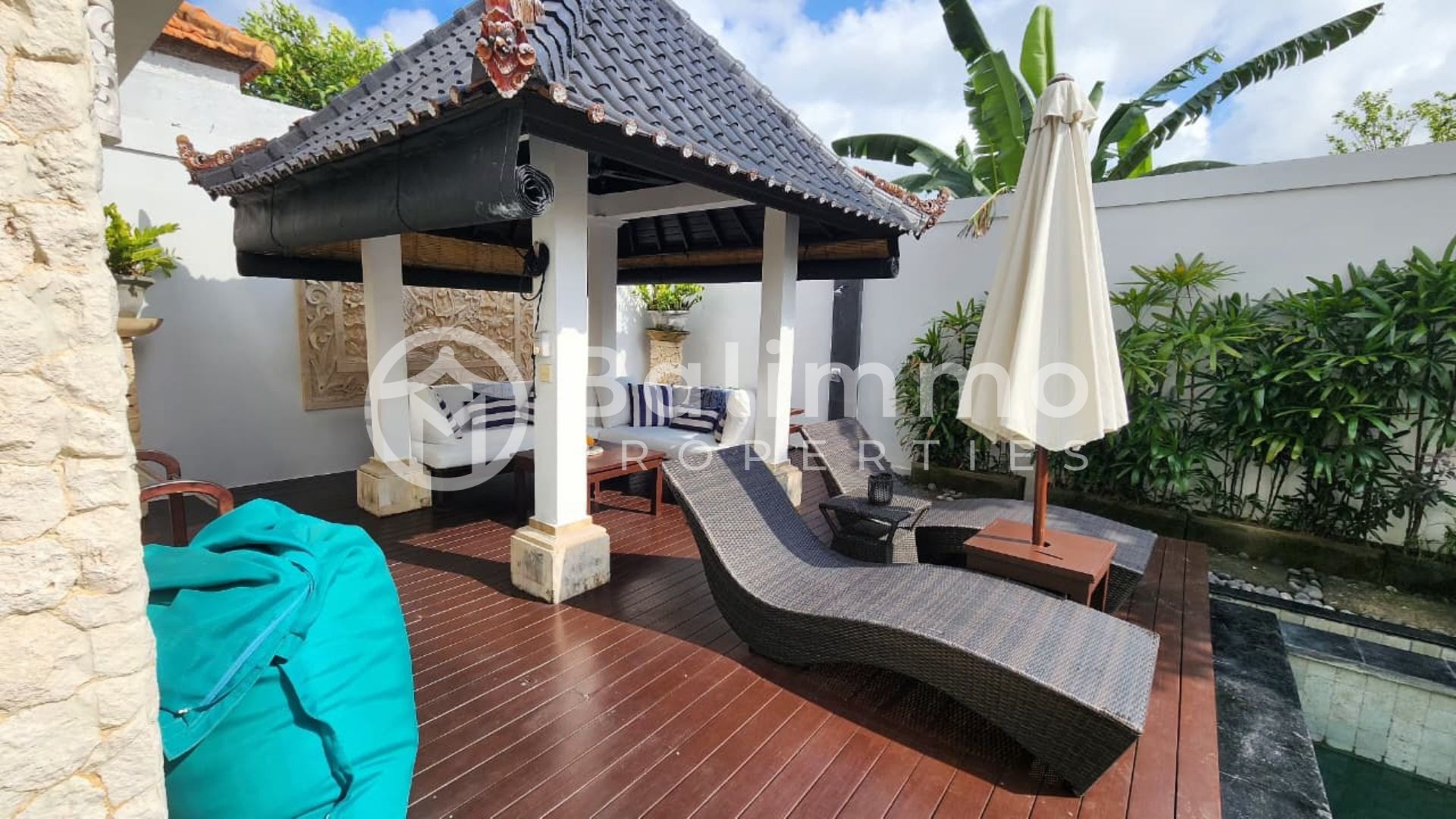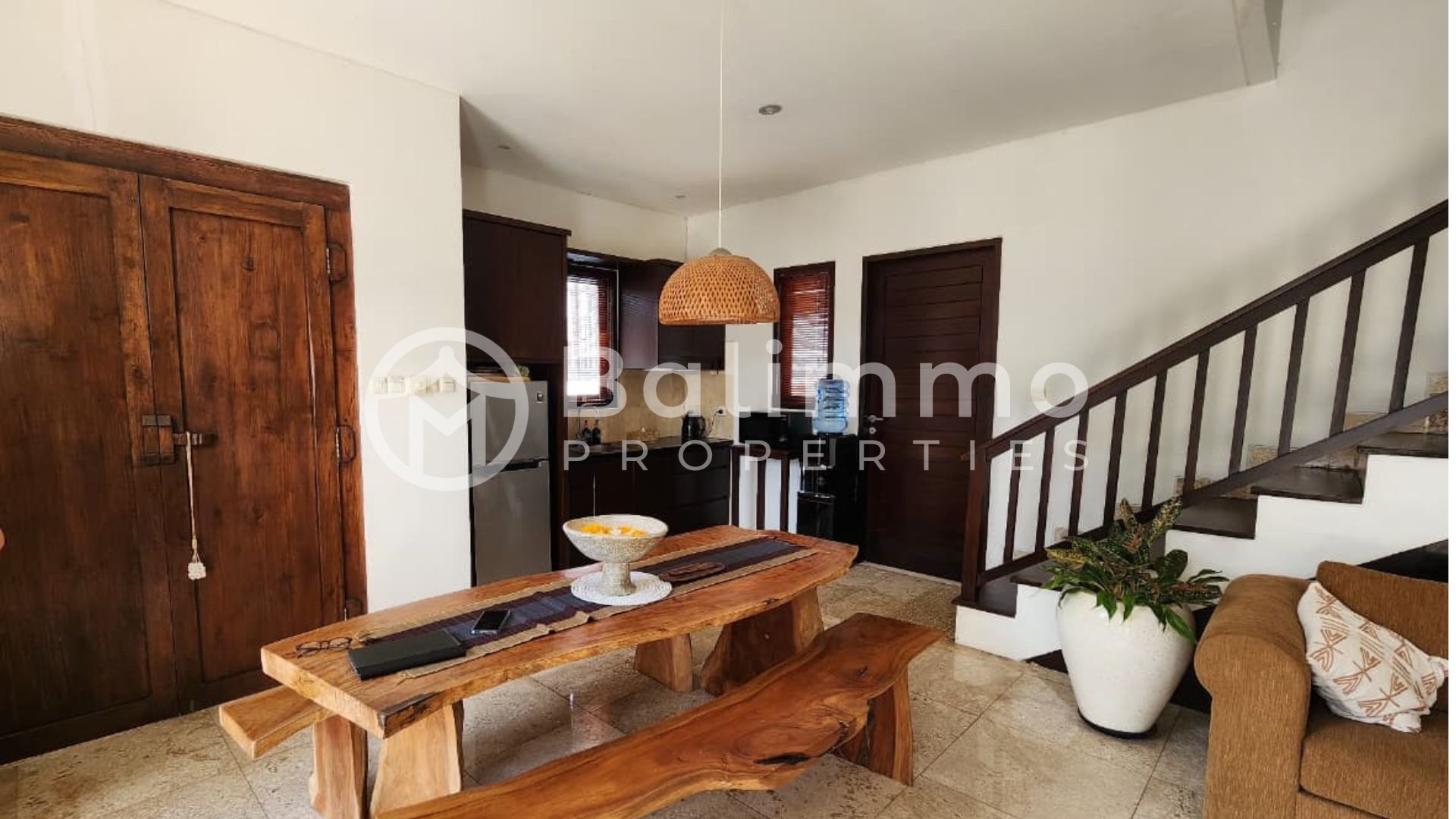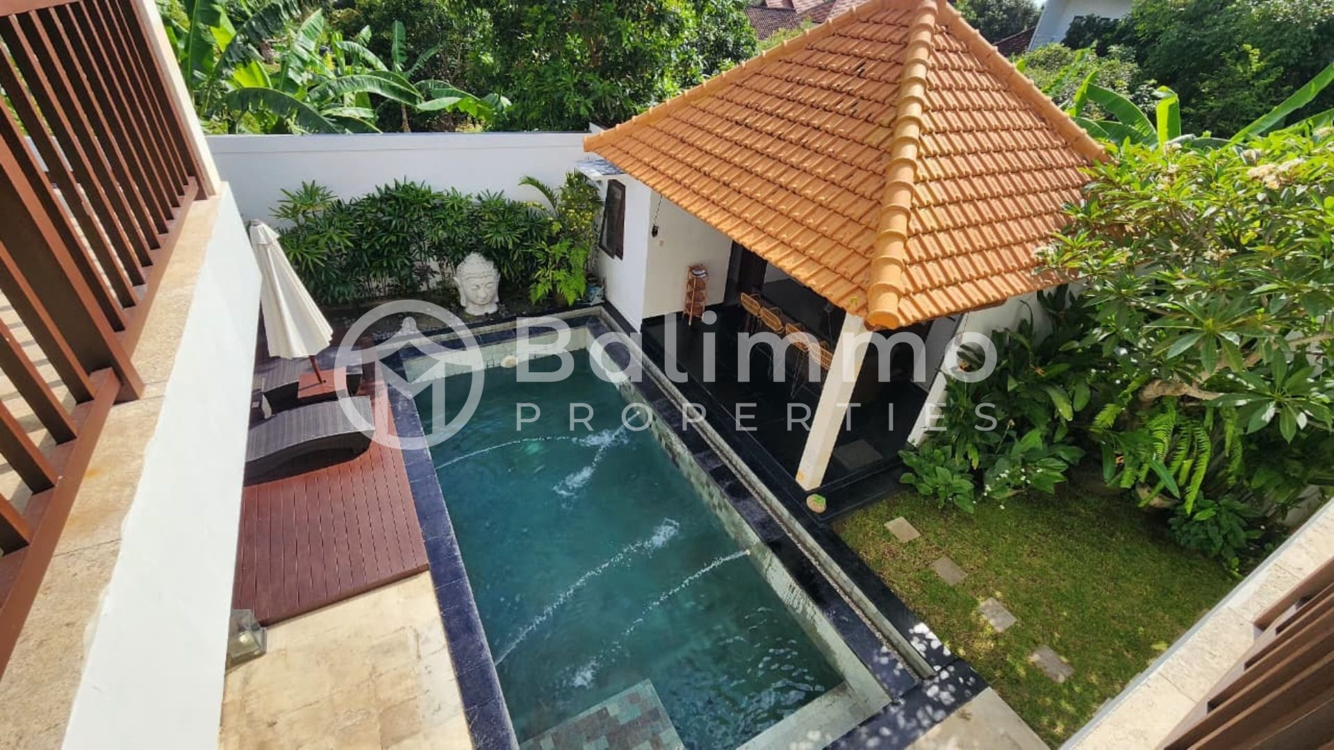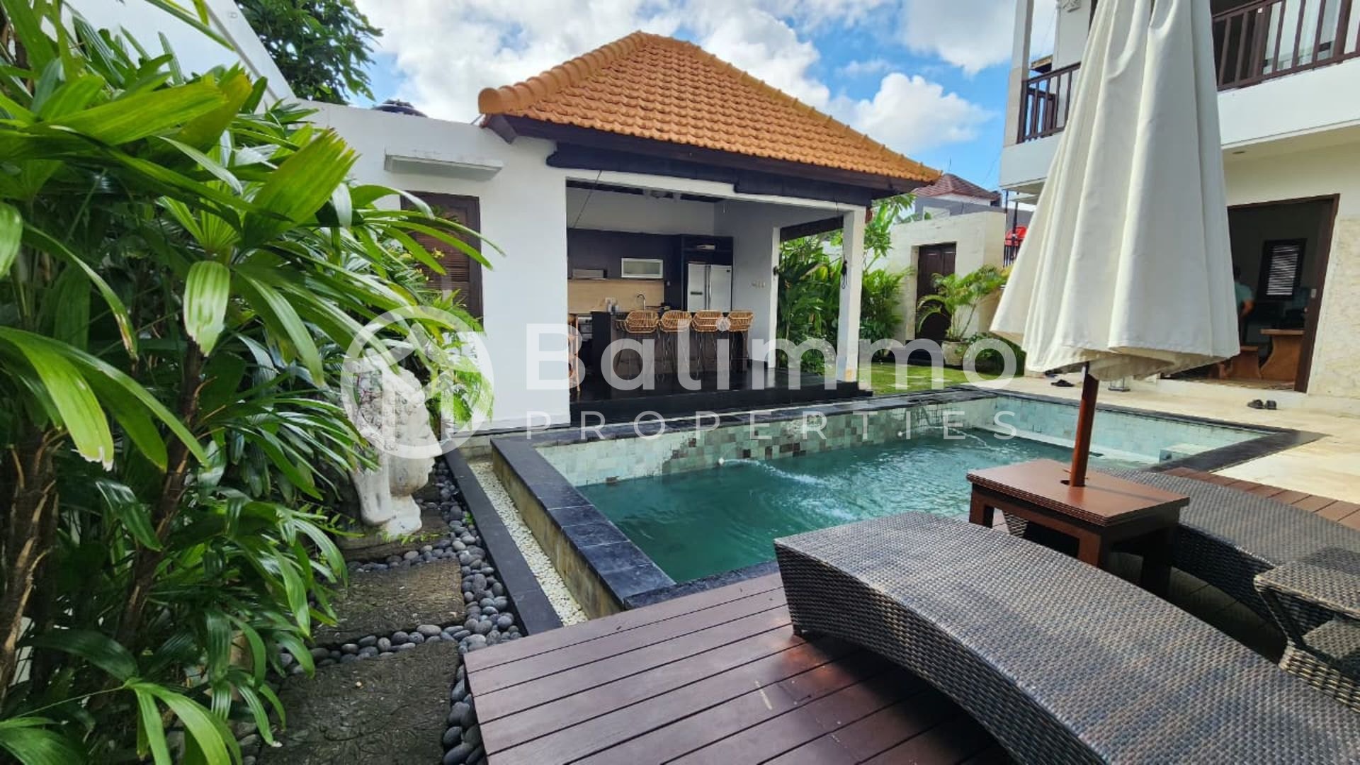 For Sale Freehold 3-Bedroom Villa for Sale in Uluwatu Situated in a residential area of Jimbaran, this villa is surrounded by other private residences and villas. The property enjoys convenient proximity to the area’s highlights: 15 minutes to Padang Padang Beach, 30 minutes to Melasti Beach, 20 minutes to Uluwatu Temple, and 20 minutes to Ngurah Rai International Airport. The villa is set on 300 m² of land with a well-proportioned layout. It features a 3 x 7 meter swimming pool, parking space for one car, and a gated entrance. A balcony on the second floor provides additional outdoor space. Built in 2015, this two-storey villa offers a total of three bedrooms and is fully furnished. The main building includes one bedroom with a living room on the ground floor. The upper floor consists of two additional bedrooms with access to a balcony. The property also includes an open kitchen, a laundry room, and storage space. Details • Permit : Freehold ownership (SHM) • Land size: 300 m² • Building: two storeys • Bedrooms: 3 • Bathrooms: 3 • Pool: 3 x 7 m • Furnished • Year built: 2015 • Price: IDR 4,500,000,000 BALIMMO PROPERTIES – Contact us to schedule a visit.
