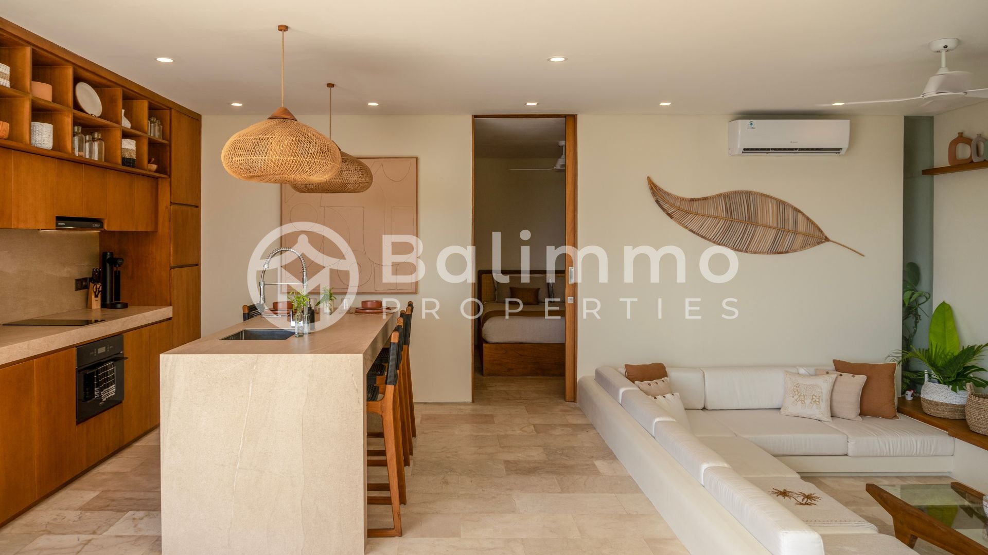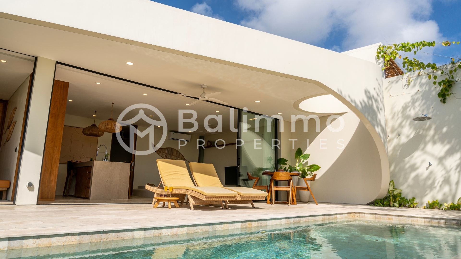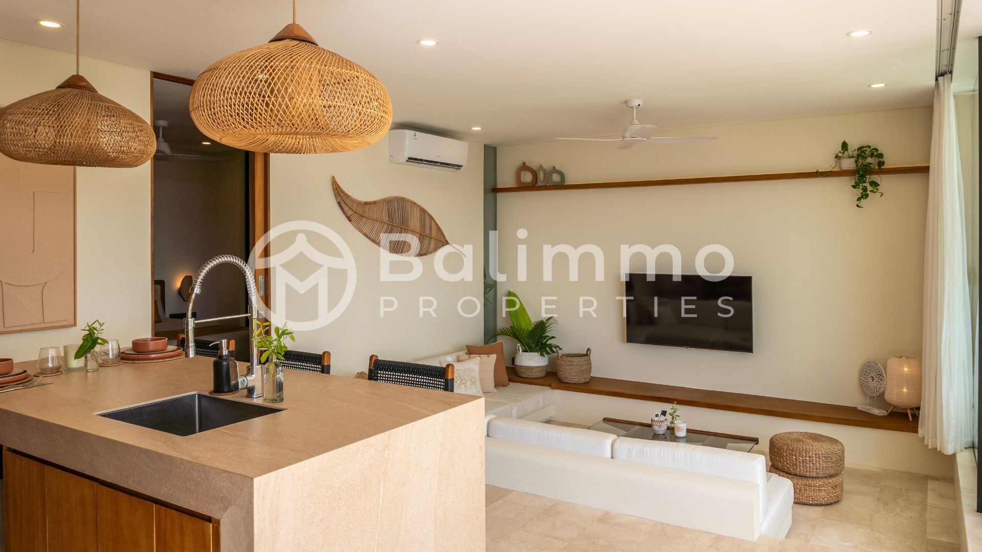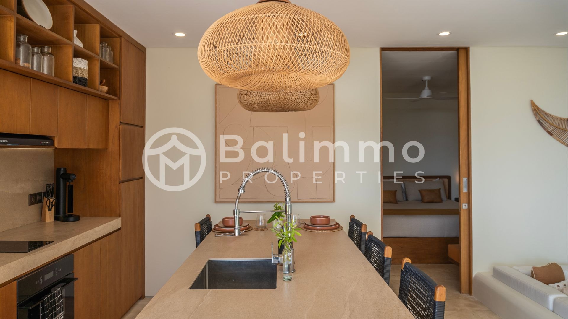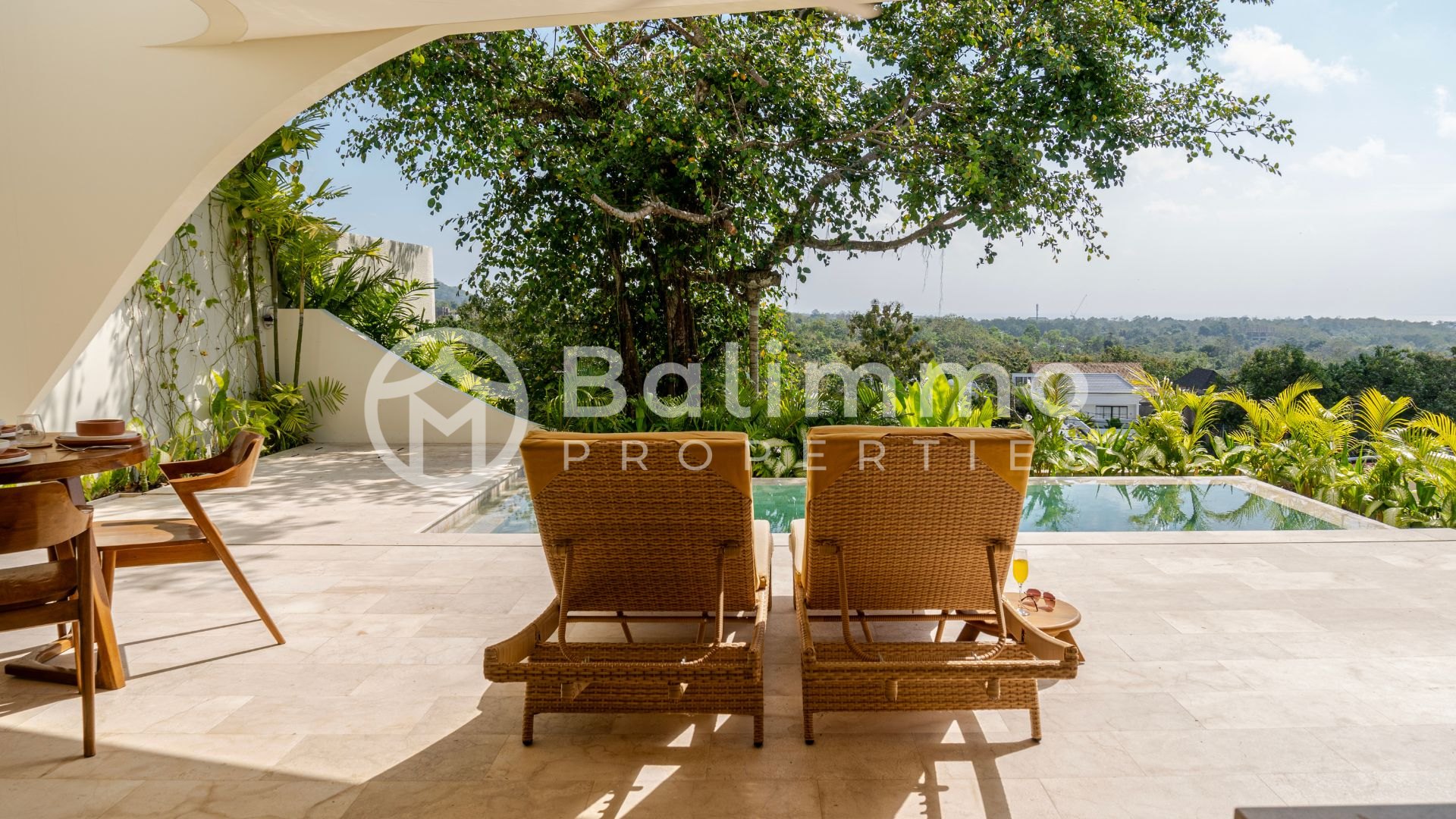 Modern Two-Bedroom Ocean View Villa in Bingin – Leasehold Until 2053 Situated in the highly desirable Bingin area, this villa offers proximity to world-class surf breaks, fine dining, beach clubs, and boutique shopping. Bingin Beach and the vibrant Uluwatu area are just minutes away, making it an excellent location for both lifestyle and investment. Set on 168 m² of land, the villa features a private west-facing pool and garden with a spacious deck, perfect for enjoying Bali’s iconic sunsets. The property also includes a shared carport with ample parking space. Completed in July 2025, the villa spans 79.27 m² on a single level. It offers two bedrooms and two bathrooms, including a master suite with ocean views. The living area features a sunken lounge with seating for six, complemented by a fully equipped modern kitchen finished with premium stone. The villa is fully furnished, including Tempur and King Koil bedding, and is equipped with modern amenities such as AC and ceiling fans, hot water system, CCTV, internet, and fire safety equipment. Additional Information Land size: 168 m² Building size: 79.27 m² Bedrooms: 2 Bathrooms: 2 Furnished: Fully furnished and equipped Pool: Private, west-facing with deck Parking: Shared carport Ownership: Leasehold until February 2053 Price: Rp. 5,600,000,000 BALIMMO PROPERTIES – Contact us to schedule a visit.