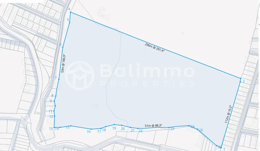 This large land is available for lease in Jimbaran, Bali, located in a yellow (residential) zone. With its generous size, the land is ideal for developing a residential project, villa complex, or other long-term developments. Jimbaran is a strategic area with easy access to main roads, the airport, and popular beaches. Land Details Land Size : 3 hectares (300 are / 30,000 m²) Length : 200 meters Width : 150 meters Location : Jimbaran, Bali Zoning : Yellow Zone (Residential) Topography : Flat land Access Road : 4.5 meters Lease Period : 25 years (extendable) Split : No Lease Price : IDR 10,000,000 / are / year BALIMMO PROPERTIES – Contact us for more information.