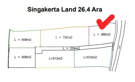 This 3.86 are plot is available under a 30-year leasehold in the residential area of Singakerta, just minutes from central Ubud. Located in a developing residential environment, the land is surrounded by existing villa complexes, ensuring a structured neighborhood and good infrastructure. The area offers a peaceful atmosphere with open rice field views, while remaining accessible to restaurants, shops, and daily amenities in Ubud. Road access is convenient for both private and rental projects. The plot benefits from a rice field view and a regular shape, making it suitable for the construction of a private villa or a small investment property. The surrounding villa developments enhance the investment value and rental potential. The 30-year leasehold provides long-term security for development. Key details : • Land zone: Yellow zone (residential) • Permit : Hak Milik • Total size 3,86 are • Price : IDR 9.995.000 / are / year • Leasehold for 30 years BALIMMO PROPERTIES – Contact us for more information.