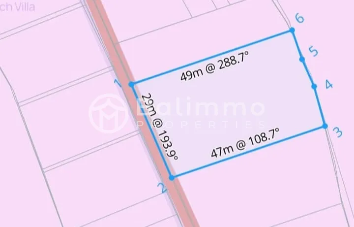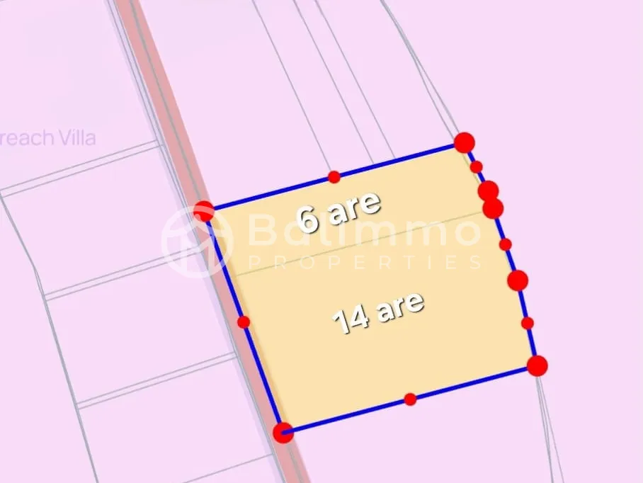 A total land size of 20 are is available for purchase, composed of two adjacent plots of 6 are and 14 are. This configuration offers flexibility for phased development or a larger single project. The land is located in Balangan, Jimbaran, within walking distance to Balangan Beach. The area is well established, surrounded by villas and restaurants, creating a lively yet desirable coastal environment. The plot benefits from 5-meter-wide road access, suitable for both private and commercial use. The land is held under SHGB title and zoned Pink, allowing commercial development. With front widths of approximately 13 meters and 29 meters, the land is well suited for a villa complex, hospitality project, or mixed-use development. Its proximity to the beach and existing tourism infrastructure makes it a strong investment opportunity. Key details : • Land zone: Pink Zone • Permit : Hak Milik • Total size 20 are • Price : IDR 1.025.000.000 / are • Freehold BALIMMO PROPERTIES – Contact us for more information.