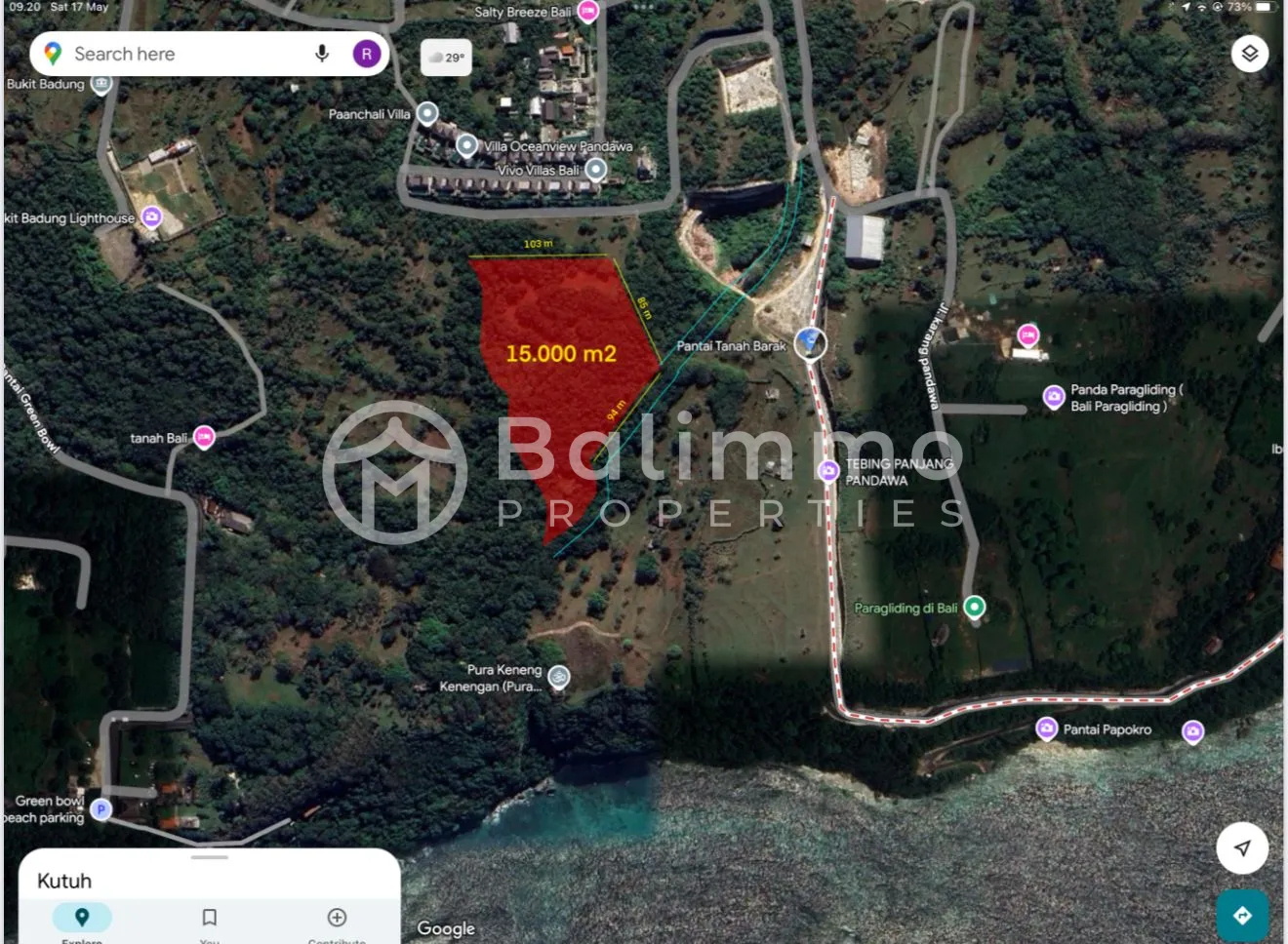 A strategic land plot of 1.5 hectares located in the Barak Kutuh area, just minutes from Vivo Villa. Positioned within the tourism zone, this land is ideal for developing a villa complex, resort, or various commercial projects in this fast-growing area of Kutuh. With good access and a developing surrounding environment, this property offers strong potential for long-term investment. Land Details • Land Size: 1,500 are/ 1.5 hectares • Price/Ara : Rp. 820,000,000 • Zoning: Tourism Zone • Certificate: SHM/Sertifikat Hak Milik • Location: Kutuh Beach • Access: Good road access in a developing area BALIMMO PROPERTIES – Contact us for more information.