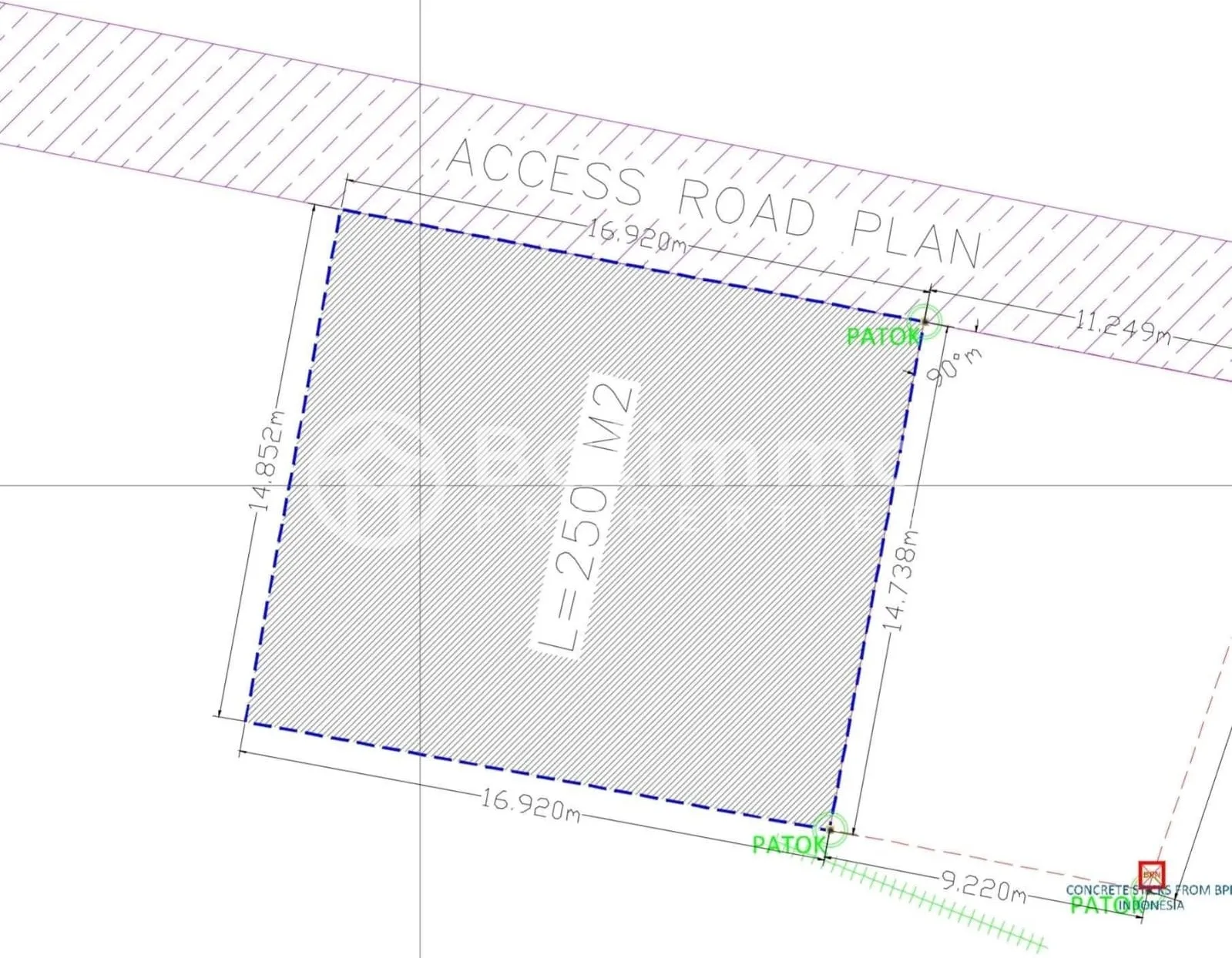 The plot is situated in a well-established residential area in Jimbaran, surrounded by private villas. The neighborhood is calm and suitable for long-term living or rental use. Access is provided by a 4-meter-wide road, ensuring easy vehicle access. Balangan Beach is reachable within approximately 4 minutes, with nearby amenities and main roads close by This land is ideal for the development of a private villa or a small investment project. The flat terrain and regular shape allow efficient construction. The Pink zoning supports residential use, making it suitable for leasehold villa development in a high-demand area close to the beach. Key details : • Land zone: Pink Zone • Permit : Hak Milik • Total size 2,5 are • Price : IDR 18.489.000 / are / year • Leasehold for 30 years BALIMMO PROPERTIES – Contact us for more information.
