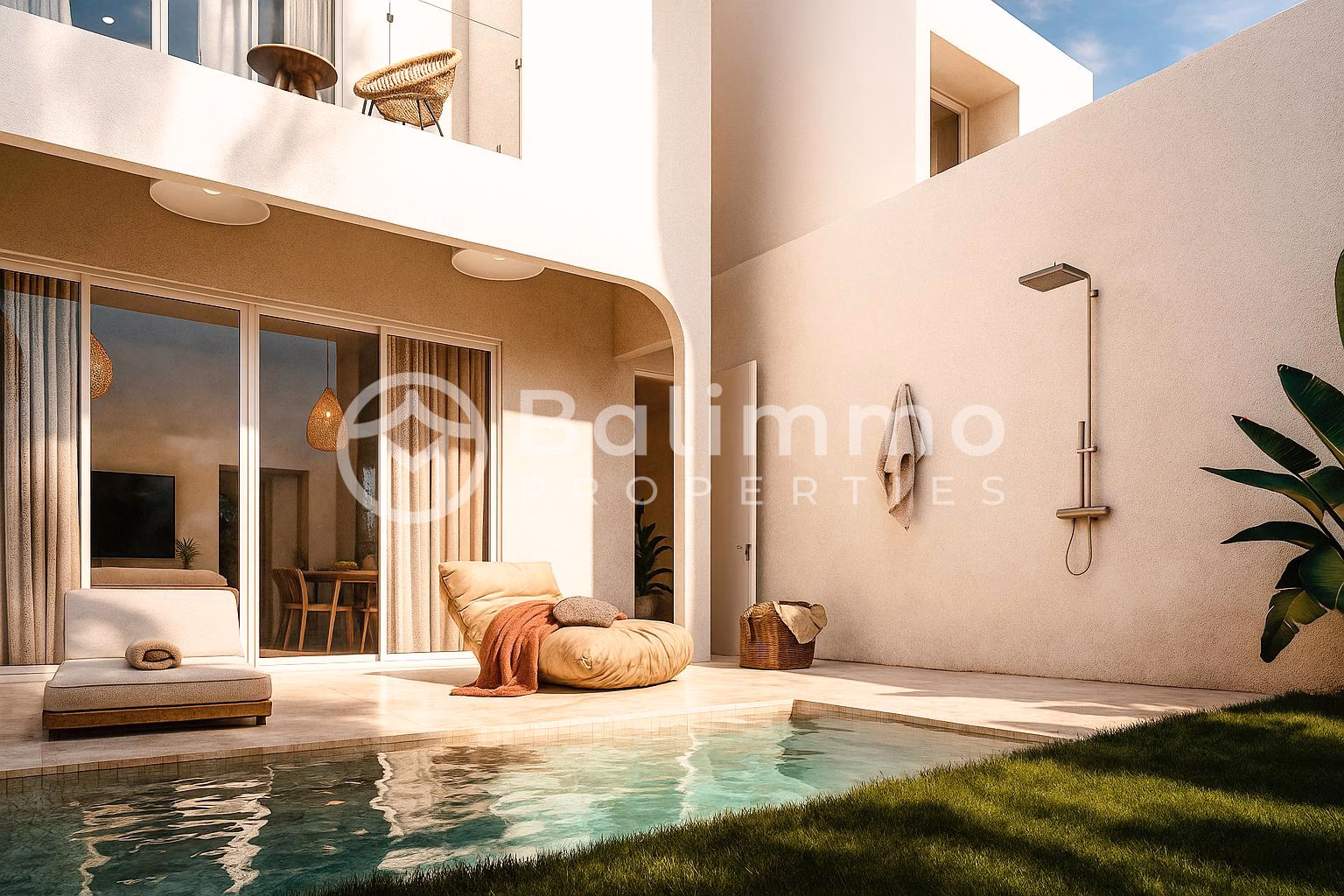 Leasehold Villa in Melasti Uluwatu – Semi Furnished Surroundings Located in a quiet area of Melasti, Uluwatu, close to popular amenities: 2 min to cafés and restaurants 4 min to gym 5 min to supermarket 7 min to Melasti and Karma Beach Clubs 10 min to Kuta Golf 12 min to tennis and padel courts 13 min to Sidewalk Mall 17 min to hospital 40 min to the airport Built on 117 m² of land, the villa offers a 9 m² swimming pool, outdoor shower, balcony, private carport, and parking for one car and motorbikes. Space for a washing machine is also provided. Interior The 110 m² villa includes two bedrooms with built-in wardrobes, two bathrooms, and a guest restroom. The enclosed living area features air conditioning and a fitted kitchen with modern appliances. Inventory Highlights 3 AC units (2 bedrooms, 1 living room) Modena Liscio stove or equivalent Ariston kitchen sink Toto sanitary fittings Shimizu pump and water heater 1050 L + 3000 L water tanks Wooden interior doors, UPVC windows Ceramic flooring Additional Information Land: 117 m² Building: 110 m² Pool: 9 m² Semi furnished Leasehold: 25 years – USD 139,000 Leasehold: 40 years – USD 155,000 Add 20% for fully furnished option Completion : March 2026 Permit: SLF Zoning: Yellow Zone BALIMMO PROPERTIES – Contact us to schedule a visit.