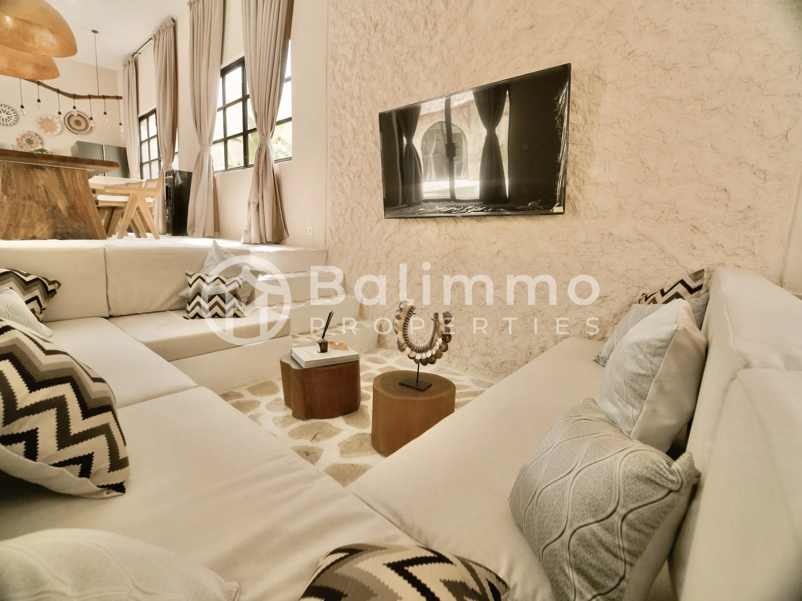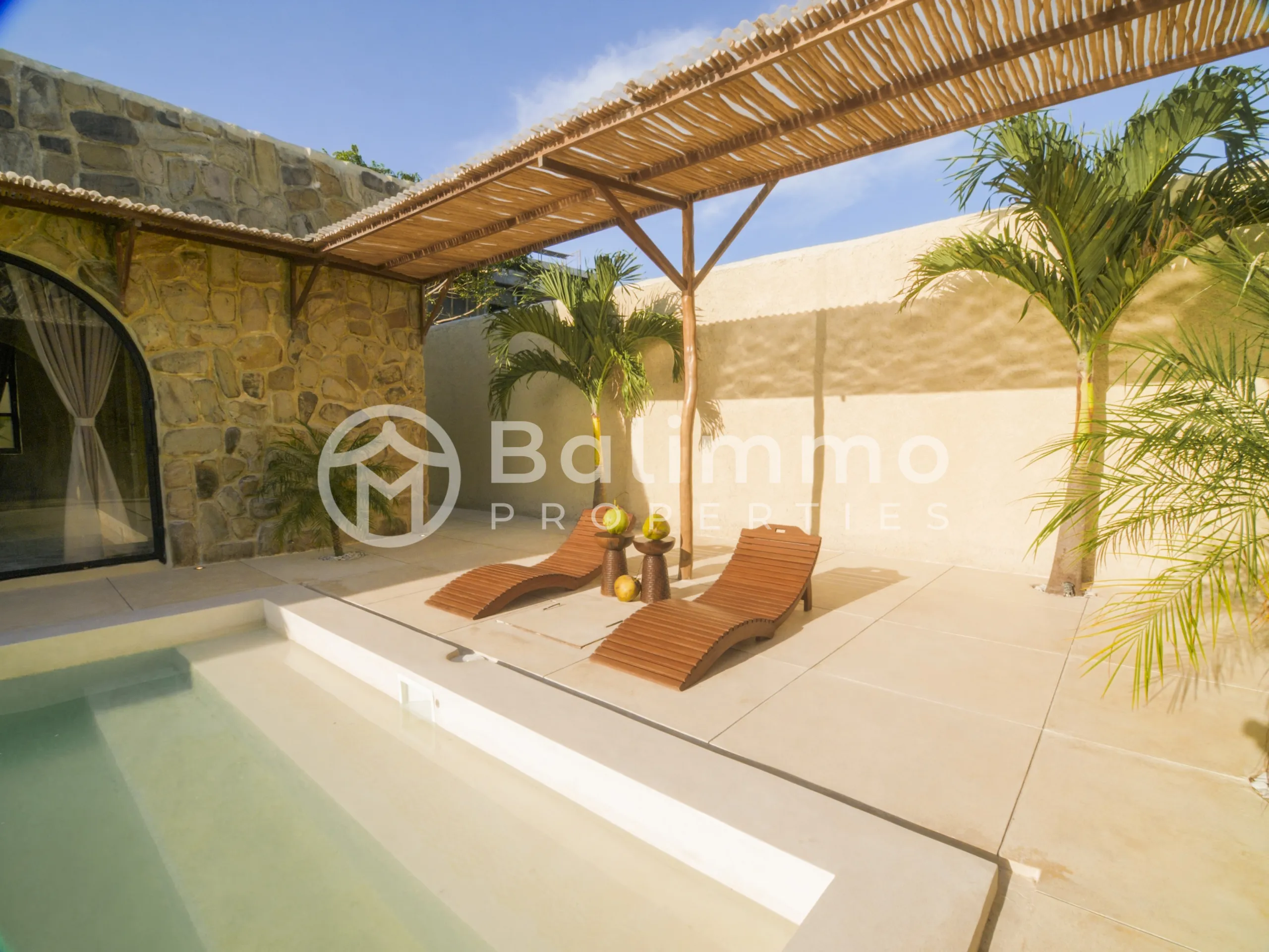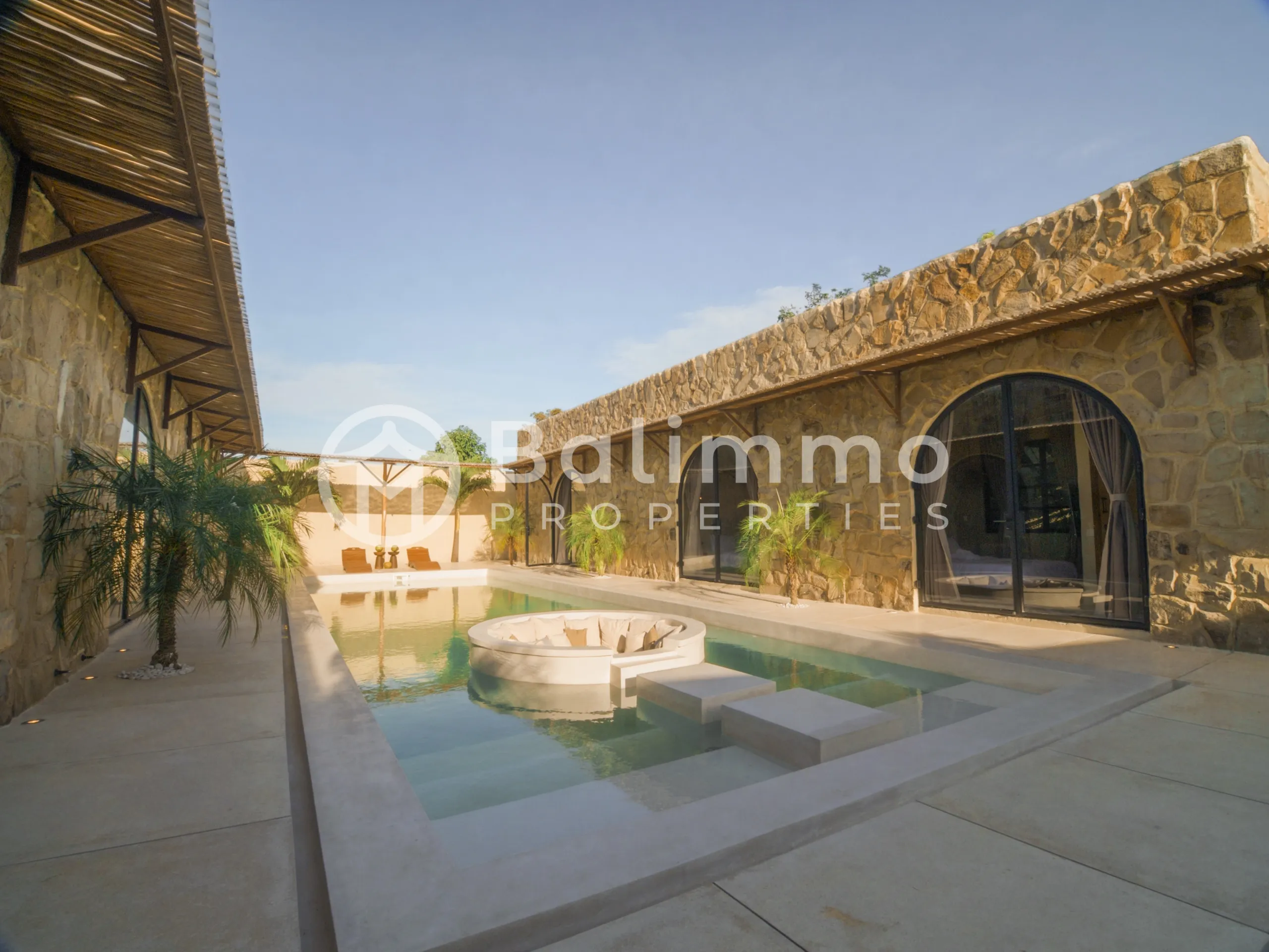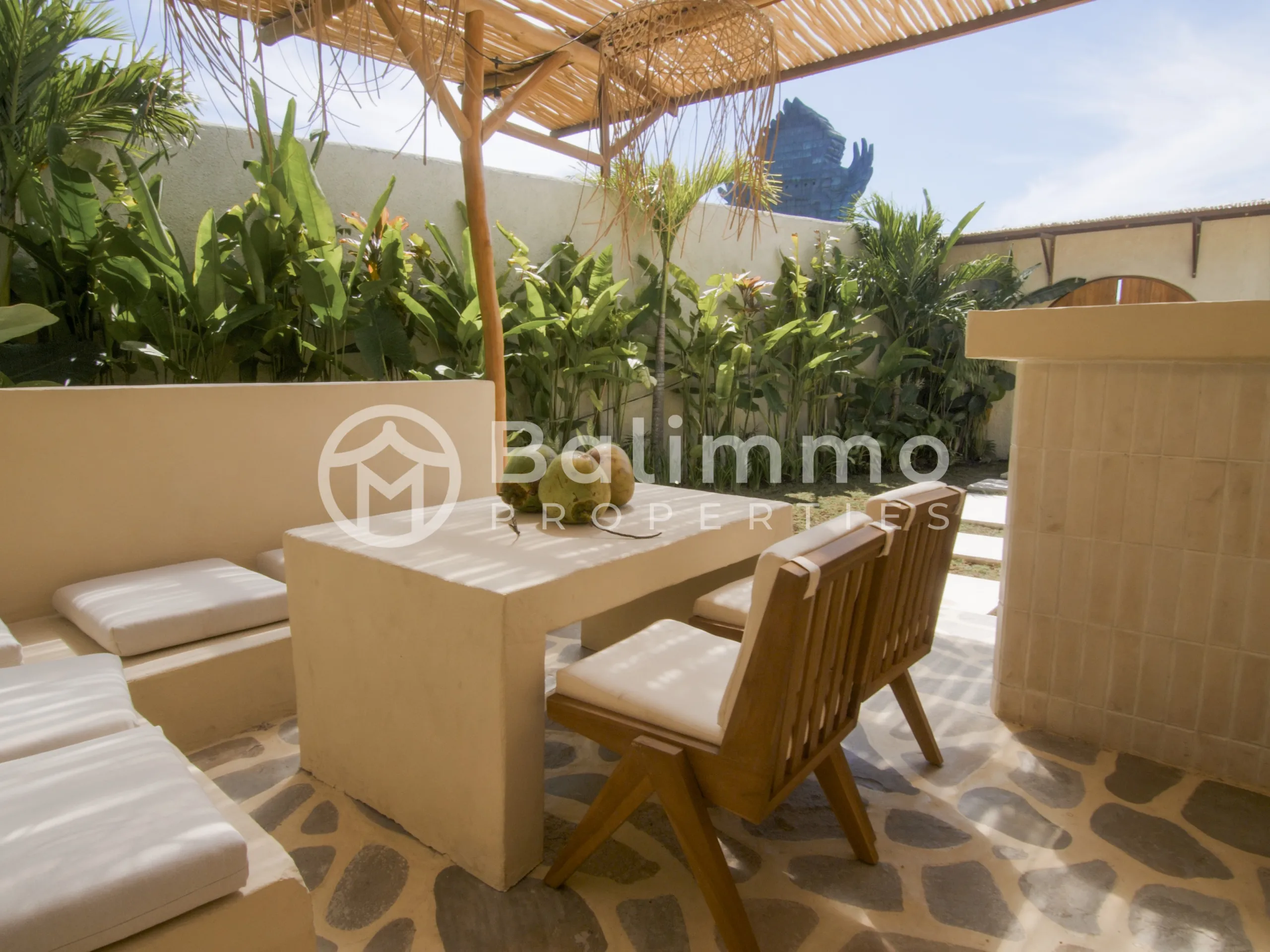 SEA Villas – Leasehold 3-Bedroom Jungle Retreat with GWK Views Location Nestled in a quiet elevated area, SEA Villas offers a peaceful setting with panoramic views of the Garuda Wisnu Kencana (GWK) monument and surrounding greenery. The property is within walking distance of premium wellness facilities and a short drive to Bali’s vibrant lifestyle destinations. Exterior Each villa sits on landscaped grounds with a 33 m² private pool, tropical garden, and open terraces designed for outdoor living. The architecture blends minimalist Mexican-inspired lines with a tropical Balinese touch, creating a serene modern retreat. Interior The villas feature 3 spacious bedrooms, open-plan living and dining areas, a modern kitchen, and a dedicated home office. Large glass openings connect interiors seamlessly with the outdoor spaces. Offered fully furnished, the design emphasizes light, functionality, and comfort. Additional Information • Leasehold: 30 years + 20-year extension • Land size: 460 m² • Building size: 142 m² • Warranty: 10 years structural • Permit: Hak Milik • Zoning: Yellow zone • Price: IDR 7,000,000,000 (USD 430,000) BALIMMO PROPERTIES – Contact us to schedule a visit.