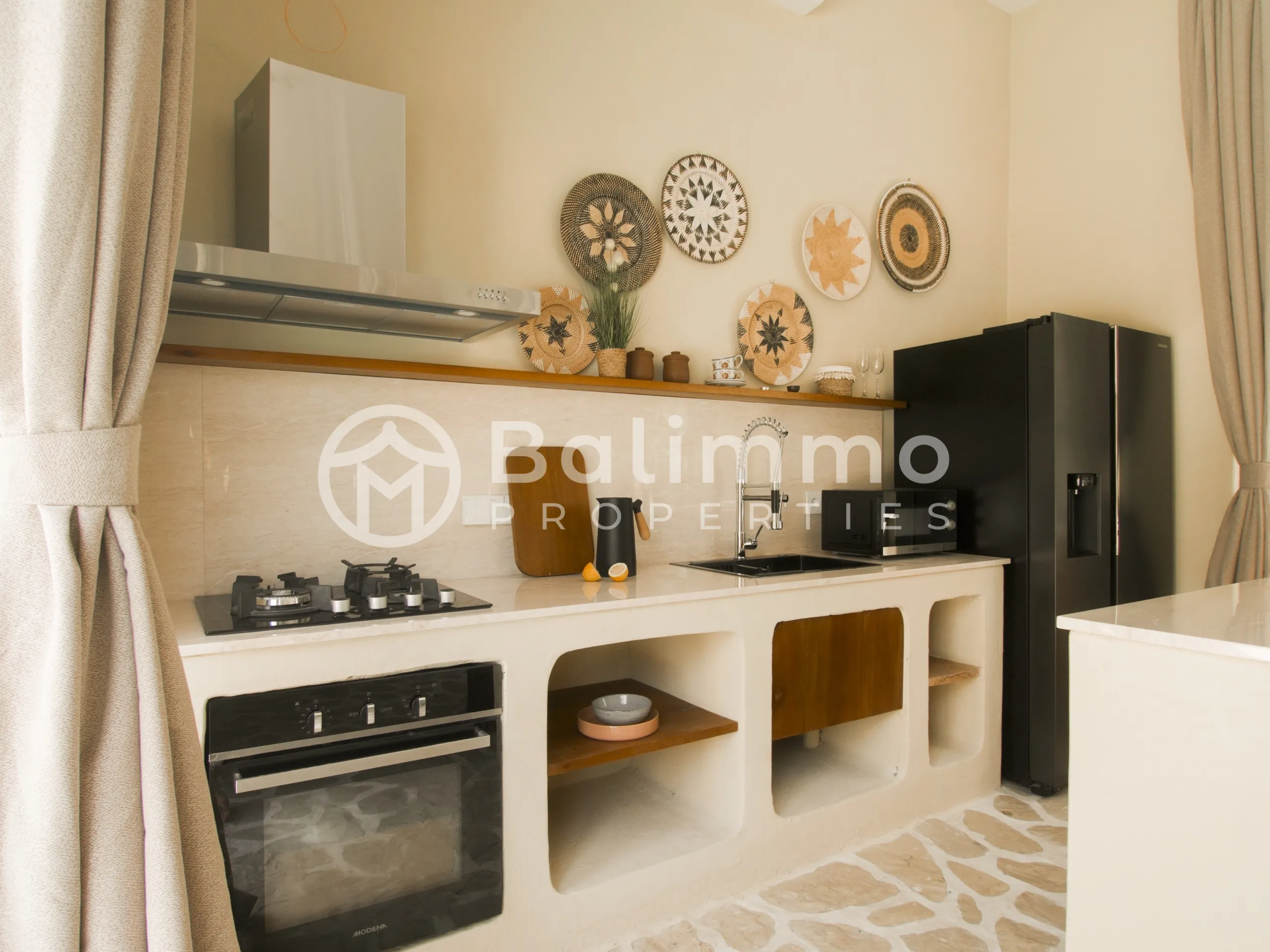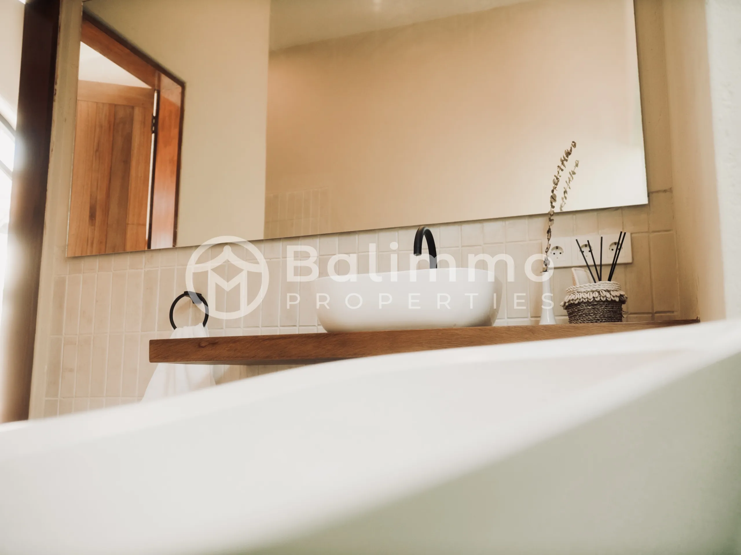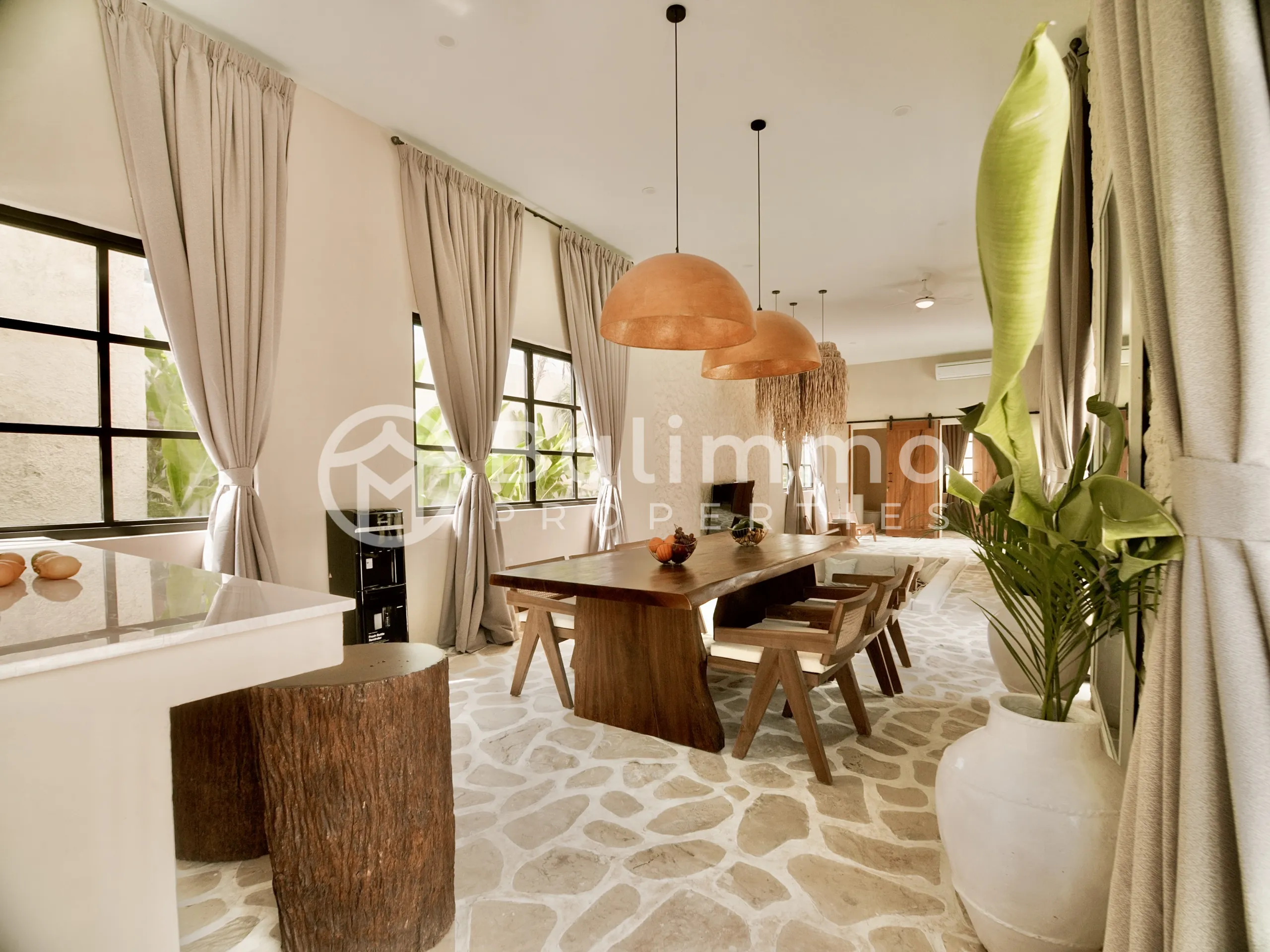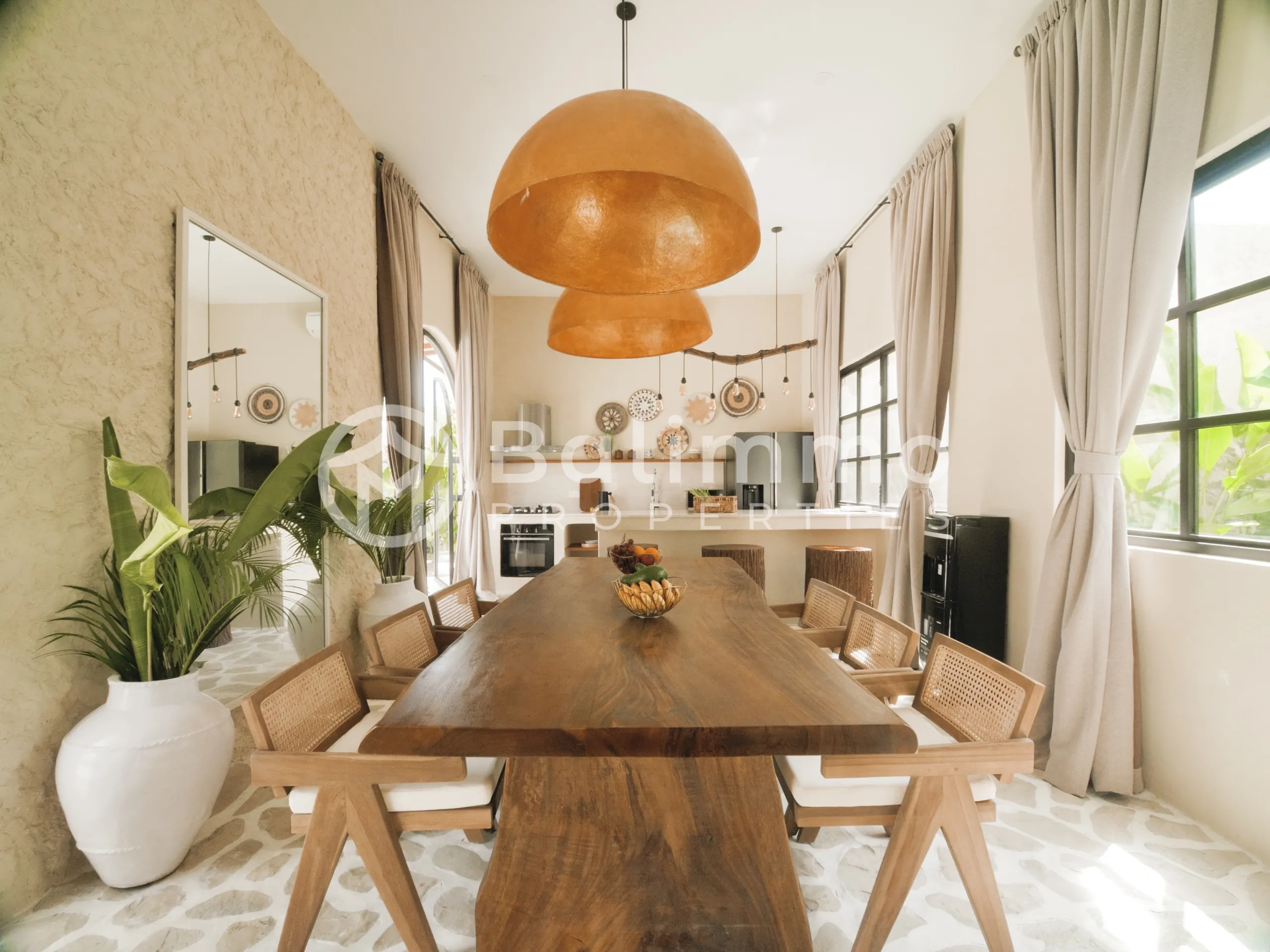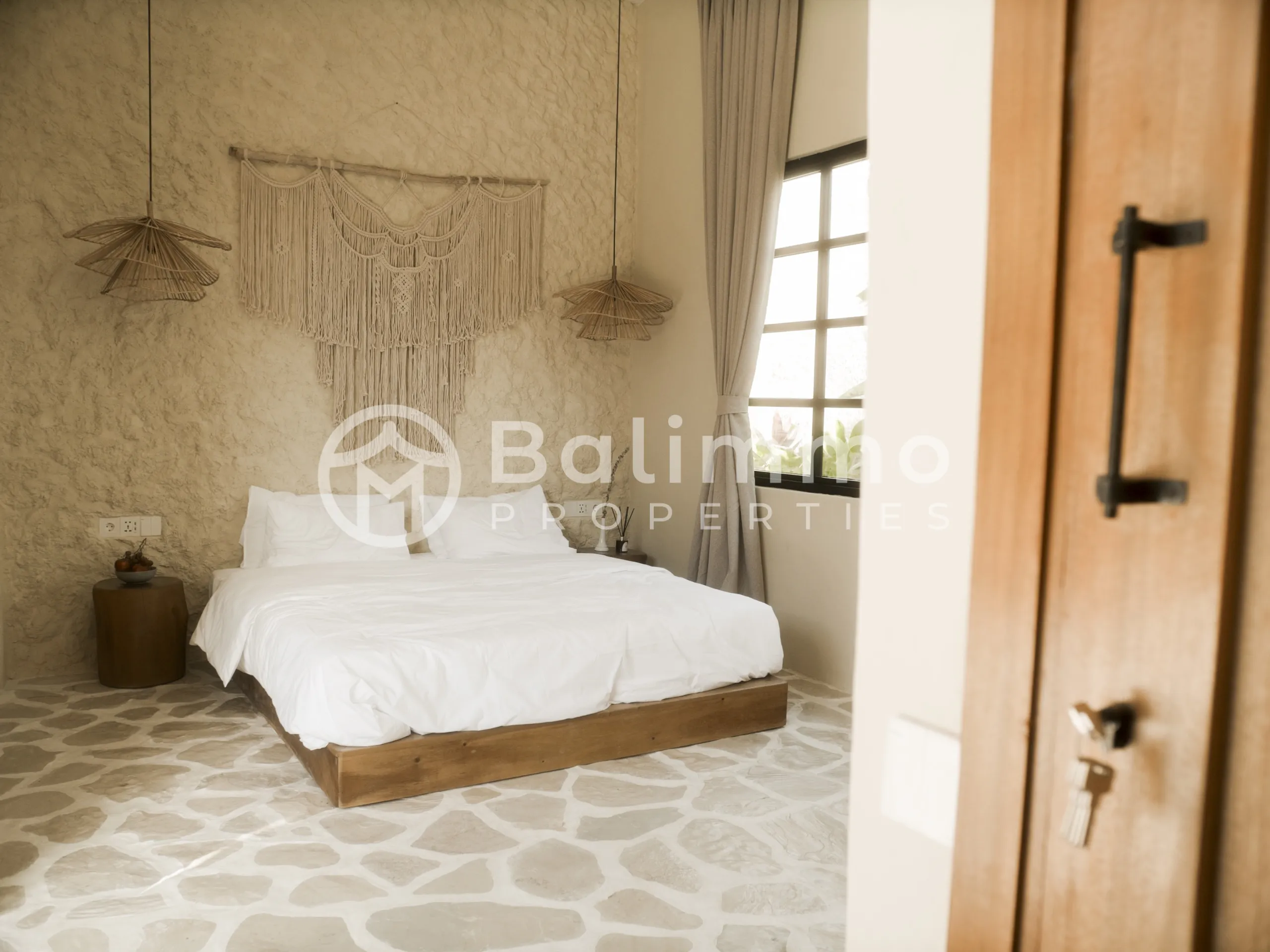 SEA Villas – Leasehold 3-Bedroom Jungle Retreat with GWK Views Location Nestled in a quiet elevated area, SEA Villas offers a peaceful setting with panoramic views of the Garuda Wisnu Kencana (GWK) monument and surrounding greenery. The property is within walking distance of premium wellness facilities and a short drive to Bali’s vibrant lifestyle destinations. Exterior Each villa sits on landscaped grounds with a 33 m² private pool, tropical garden, and open terraces designed for outdoor living. The architecture blends minimalist Mexican-inspired lines with a tropical Balinese touch, creating a serene modern retreat. Interior The villas feature 3 spacious bedrooms, open-plan living and dining areas, a modern kitchen, and a dedicated home office. Large glass openings connect interiors seamlessly with the outdoor spaces. Offered fully furnished, the design emphasizes light, functionality, and comfort. Additional Information • Leasehold: 30 years + 20-year extension • Land size: 460 m² • Building size: 142 m² • Warranty: 10 years structural • Permit: Hak Milik • Zoning: Yellow zone • Price: IDR 7,000,000,000 (USD 430,000) BALIMMO PROPERTIES – Contact us to schedule a visit.
