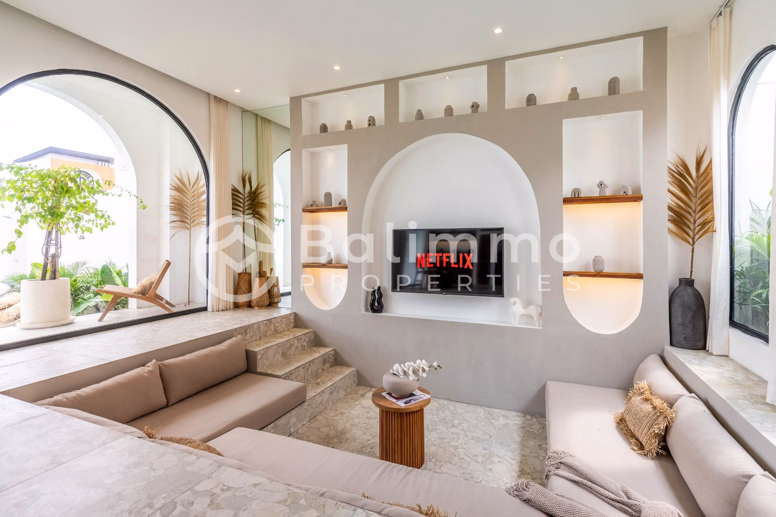 Leasehold 2-Bedroom Villa for Sale – Tumbak Bayuh, Canggu Located in the thriving area of Tumbak Bayuh, this exclusive 2-bedroom villa offers a refined blend of luxury and tropical comfort. The property sits in a strategic location surrounded by trendy cafés, fitness centers, and essential amenities. Only 8 minutes to Pererenan Beach, 11 minutes to Echo Beach and La Brisa, and 15 minutes to Canggu Community School. Daily conveniences such as Pepito and Frestive supermarkets, Surya Gym, and Kaemon Bali are just a few minutes away. Built on a 120 m² plot, the villa showcases elegant modern architecture with clean lines and tropical landscaping. The outdoor area includes a private swimming pool surrounded by a lush garden and a comfortable seating area, ideal for relaxation. The villa also provides parking for scooters and bikes. A highlight of this property is the rooftop terrace, featuring a lounge area and a jacuzzi — a perfect spot for entertaining or enjoying Bali’s evening atmosphere. Spanning 115 m² over two floors, this villa features two ensuite bedrooms with built-in wardrobes, a spacious open-plan living area, and a modern kitchen with a dining space and a sunken sofa. The layout is designed for comfort and functionality, complemented by premium finishes throughout. The villa also includes a powder room for guests and a storage room. Buyers can choose between fully furnished or turnkey options to suit their personal preferences. Additional Information : Land size: 120 m² Building size: 115 m² 2 ensuite bedrooms Rooftop terrace with lounge and jacuzzi Powder room and storage room Private swimming pool and garden Parking for scooters and bikes Furnishing: Fully furnished or turnkey Completion: August 2025 Number of floors: 2 Leasehold: 23 years with possible 25-year extension Zoning: Residential (Yellow Zone) Asking Price:IDR 3,800,000,000 BALIMMO PROPERTIES – Contact us to schedule a visit.