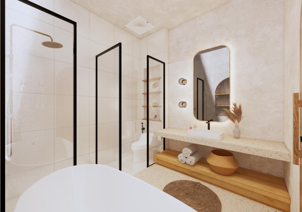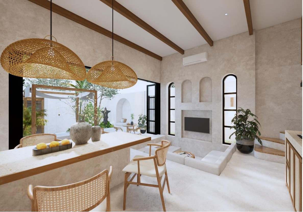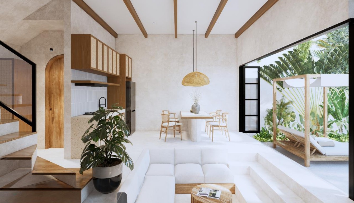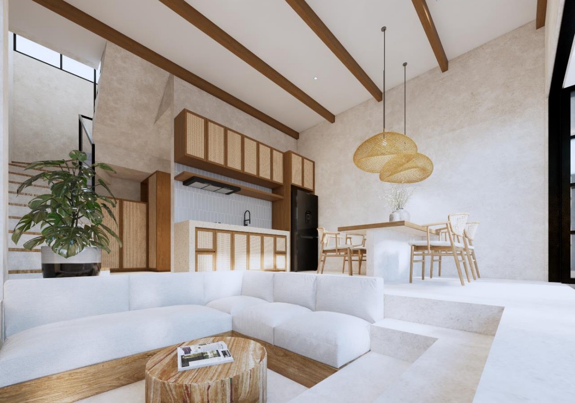 Villa A – Modern 2-Bedroom Leasehold Villa in Pecatu Surroundings / Location Strategically located in Pecatu, this villa offers easy access to some of Bali’s most iconic beaches and attractions. Pantai Cemongkak is just steps away, while Dreamland, Bingin, and Padang Padang beaches are all within a short drive. Uluwatu Temple, El Kabron Cliff Club, Single Fin, and GWK Cultural Park are nearby, along with international restaurants, cafés, beach clubs, and wellness retreats. Exterior The villa is designed with a modern architectural style and features a private swimming pool of 9 m², complemented by a landscaped hardscape of 43.79 m². Its layout emphasizes functionality and open spaces, with secure access and proximity to main roads leading to lifestyle destinations. Interior Villa A offers 2 bedrooms and 2 bathrooms across a total building size of 140.81 m², spread over two levels. The open-plan design provides a bright and comfortable living area with a modern kitchen. Large windows bring in natural light and highlight the partial ocean views, creating a contemporary and practical living environment. Additional Information • Leasehold: 25 years + 25-year extension option • Estimated completion: November 2025 • Pre-sale price (unfurnished): IDR 3,200,000,000 • Completed price: IDR 3,800,000,000 • Zoning : Pink • Permit. : Hak Milik • Building size breakdown: • Ground floor: 39.69 m² • First floor: 48.33 m² • Swimming pool: 9.00 m² • Hardscape: 43.79 m² BALIMMO PROPERTIES Contact us to schedule a visit.