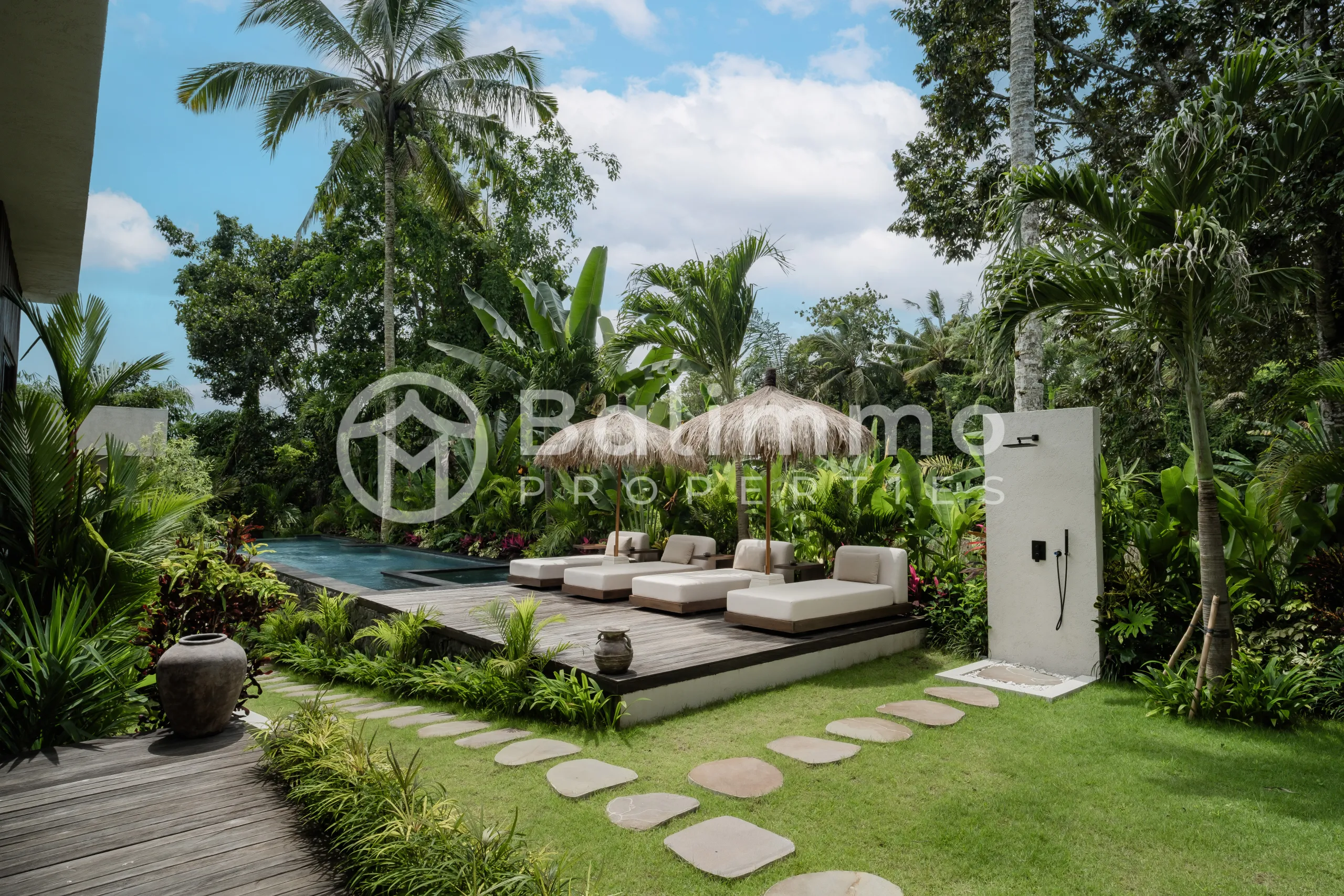 Located in Tegallalang, Ubud, this 3-Bedroom Villa is set in a peaceful natural environment surrounded by lush greenery. The area offers a quiet and residential atmosphere, ideal for those seeking privacy, fresh air, and a close connection to nature while remaining within easy reach of central Ubud. The property sits on an 800 m² plot and is designed as a private retreat immersed in tropical surroundings. The exterior features a private swimming pool integrated into the landscape, landscaped garden areas, and architecture that blends contemporary lines with natural elements. The setting emphasizes tranquility and seamless indoor-outdoor living. The villa offers a total building size of 338.5 m² and includes 3 bedrooms. Interiors are designed with high-quality materials and refined finishes, creating a calm and elegant living environment. The villa is fully furnished with carefully selected, high-end furniture. The layout prioritizes comfort, natural light, and a strong connection to the surrounding greenery. Location Highlights : • 10 minutes from Sebatu Holy Spring • 12 minutes from Tegallalang Rice Terrace • 30 minutes from Ubud Palacae Key Details : • Ownership: Freehold • Land size: 800 m² • Building size: 338.5 m² • Bedrooms: 3 • Furnishing: Fully furnished • Style: Contemporary tropical • Land zone: Yellow zone (residential) • Permit : Hak Milik • Price : IDR 15.990.000.000 BALIMMO PROPERTIES – Contact us to schedule a visit.