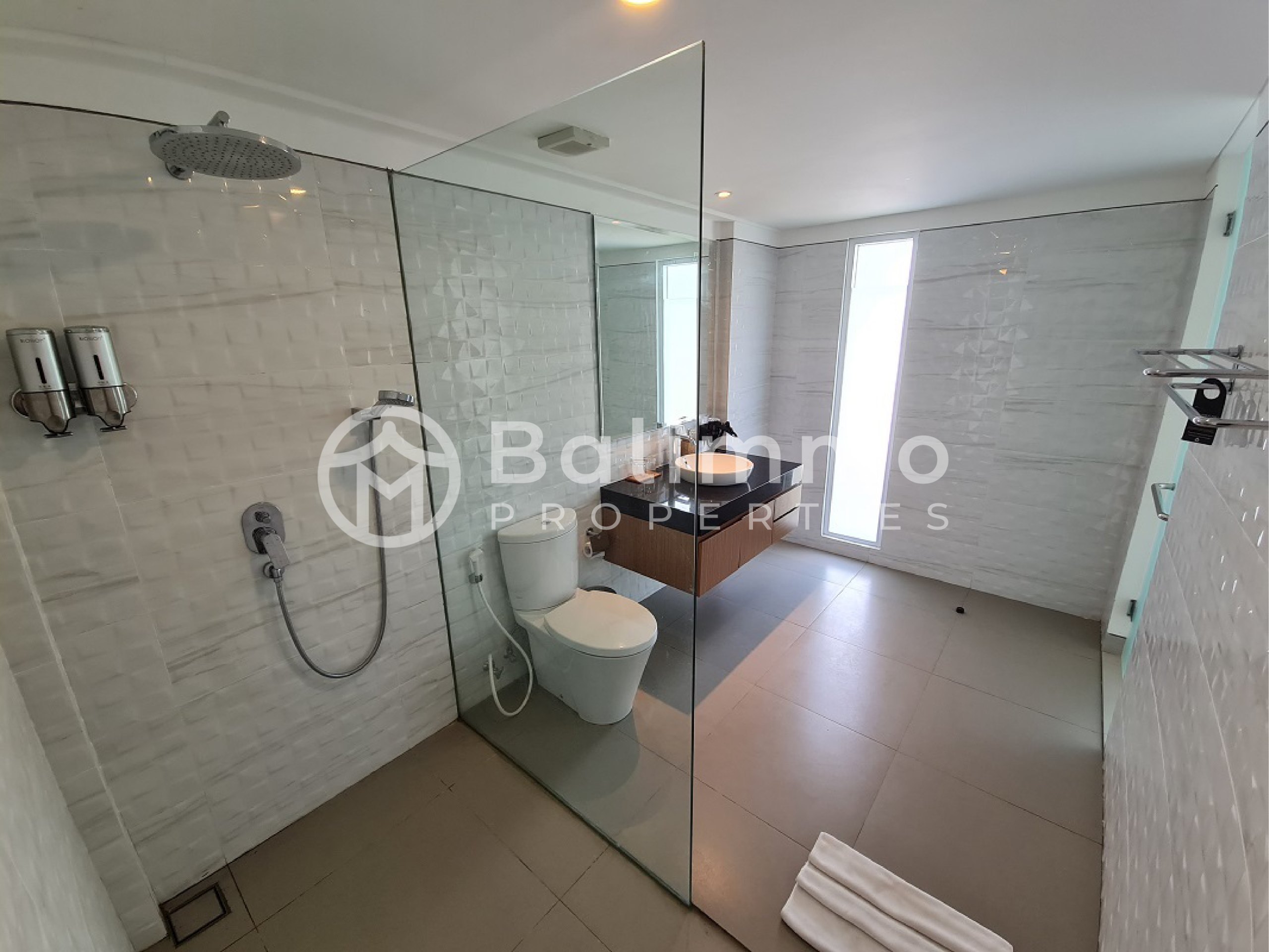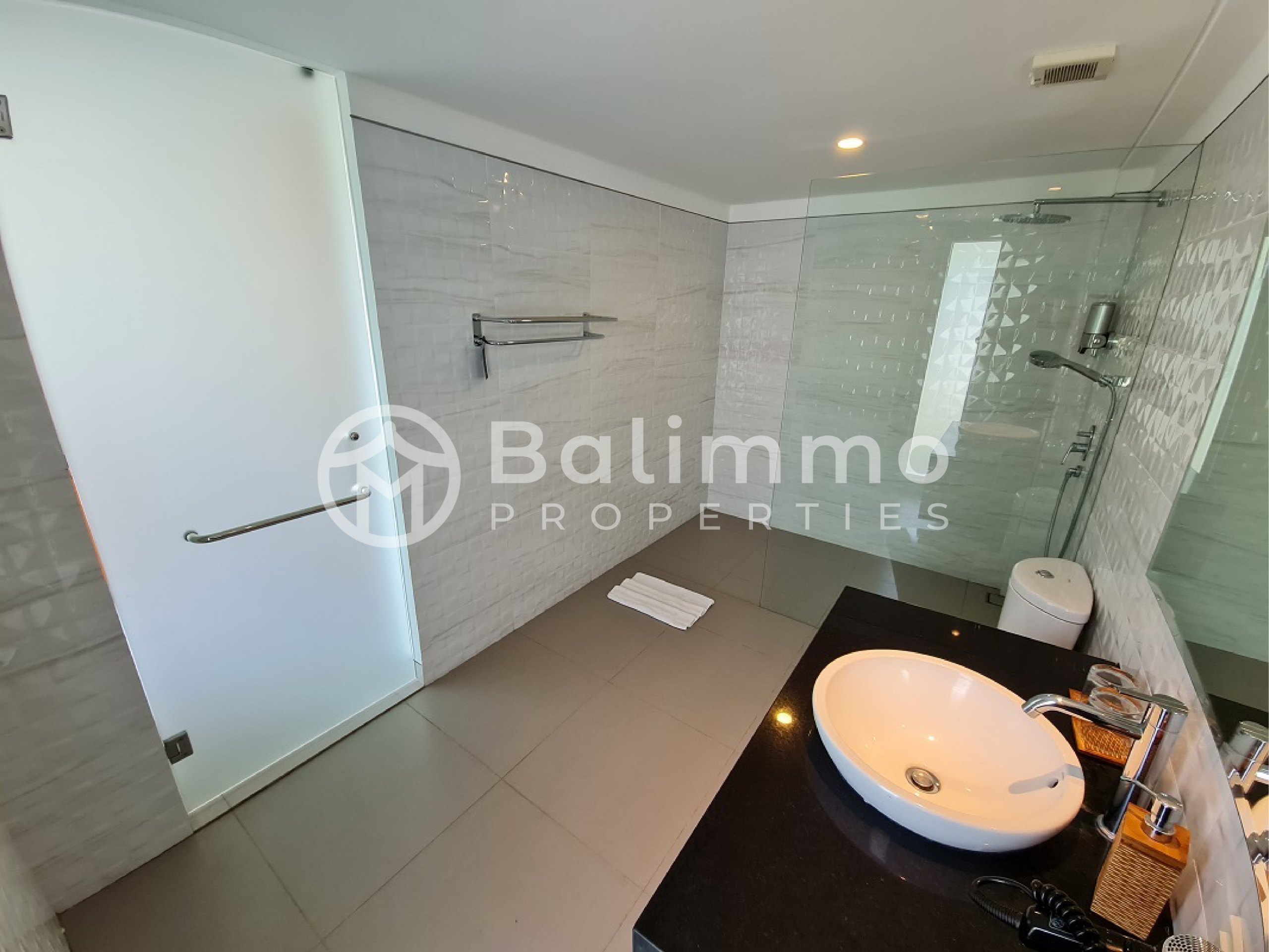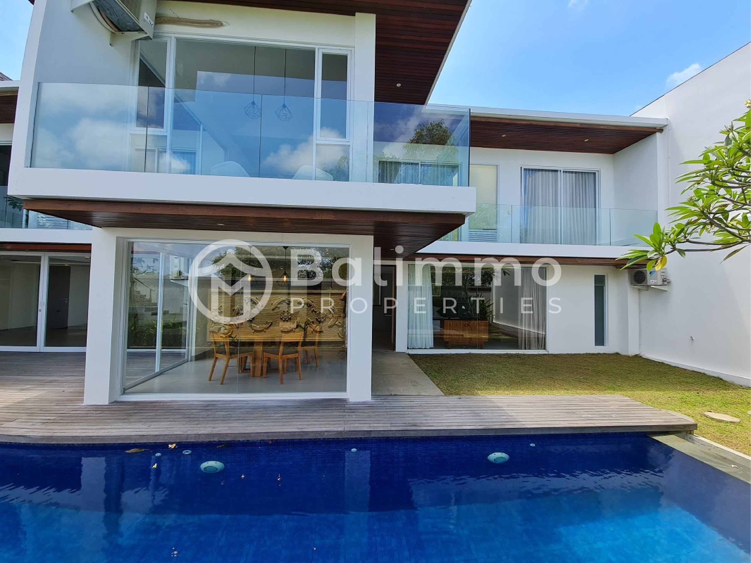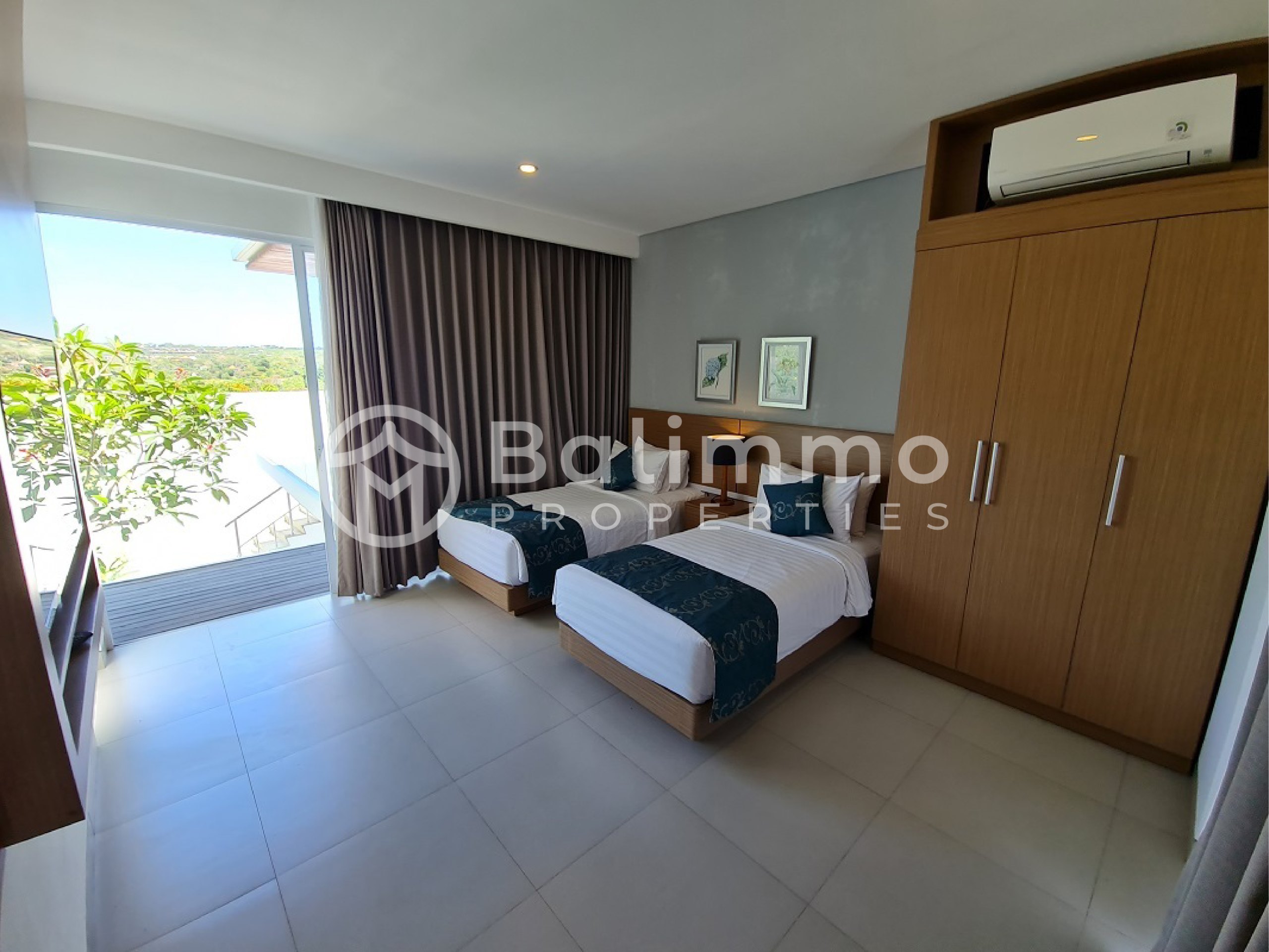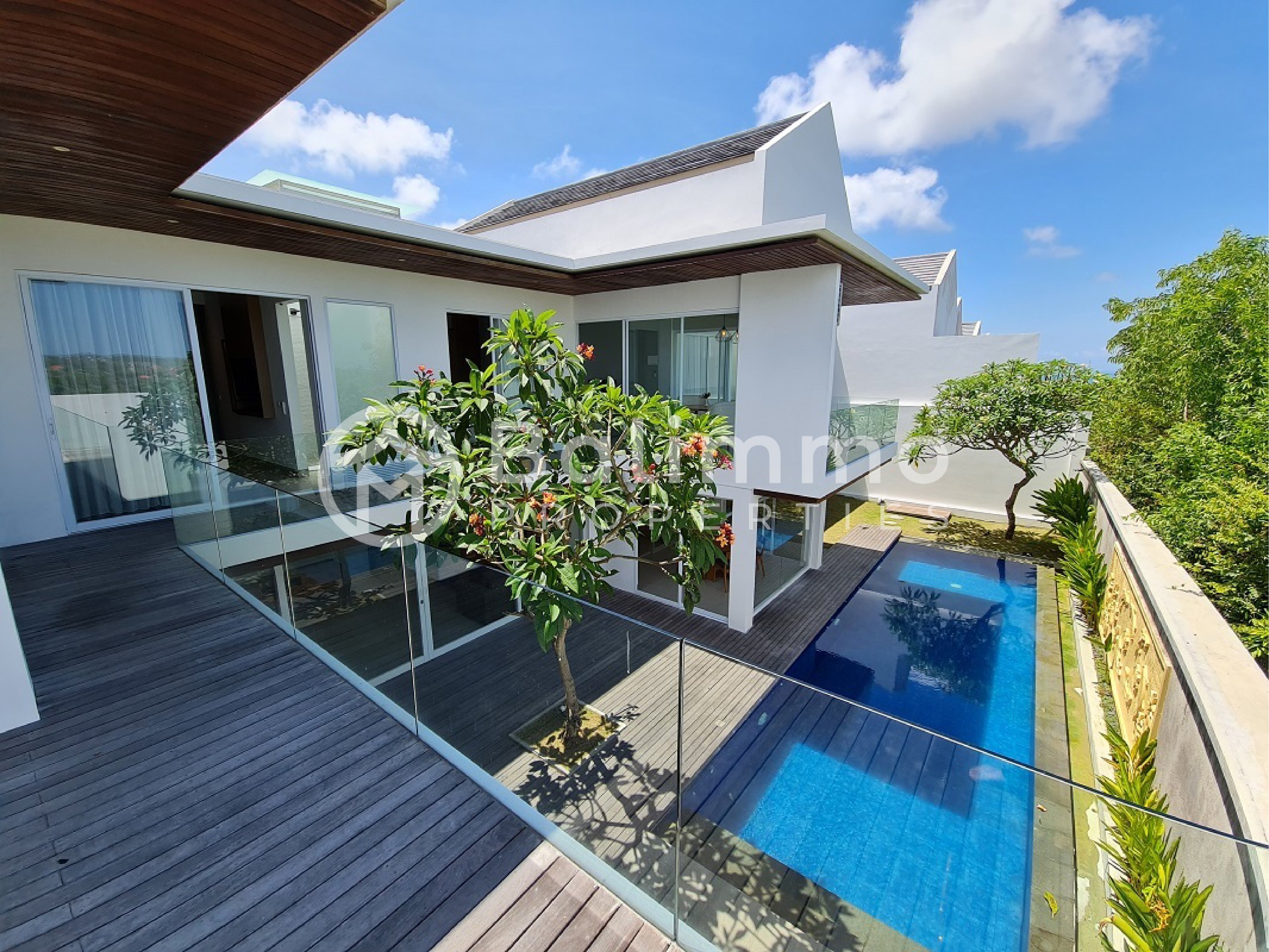 Freehold Villa in Resort Complex – Ungasan This villa is situated within a four-star resort complex in Ungasan, only 5 minutes from Nirmala Supermarket, 7 minutes from Garuda Wisnu Kencana, and 8 minutes by car to Melasti Beach. The property benefits from a strategic location close to daily amenities, cultural landmarks, and popular beaches. The villa occupies 405 m² of land with a two-storey building of 436 m². It offers a spacious carport for up to 4 cars, a private swimming pool, and a landscaped garden. The resort provides a one-gate system, underground electricity, 24-hour security with CCTV, electricity backup, PDAM and deep bore well water supply with treatment system. Residents also enjoy access to a clubhouse with café, reception, spa and wellness area, lounge, guest pick-up zone, engineering, housekeeping, storage, and parking facilities. The first floor includes 2 bedrooms with en-suite bathrooms, a living room, a dining area with a fitted kitchen, one maid’s bedroom with bathroom, and a service area. The second floor consists of 4 bedrooms with en-suite bathrooms, a workspace, study room, and an additional living room with views of the green hills, sunset, and partial ocean. Additional Information : Land size: 405 m² Building size: 436 m² Electricity: 14,000 watts Furnished Freehold (SHM) with Building Permit (IMB) Price :IDR 7,700,000,000 BALIMMO PROPERTIES – Contact us to schedule a visit.
