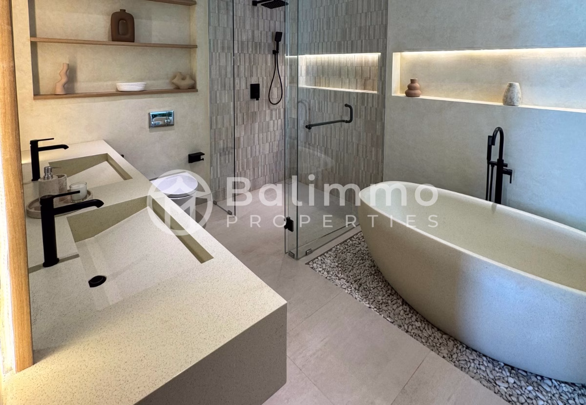 Modern 2-Bedroom Freehold Villa in Goa Gong Located in the peaceful residential area of Goa Gong, this brand-new villa offers excellent access to major destinations in South Bali. It is only 5 minutes from Udayana University, 20 minutes from Melasti Beach, 25 minutes from Balangan Beach, and about 45 minutes from Ngurah Rai International Airport. The villa sits within a developing complex surrounded by other new properties, ensuring a secure and growing neighborhood. Set on 204 m² of land, the villa features a private swimming pool, parking area, and a clean architectural design. The property is part of a gated complex with convenient access and good road infrastructure. The building spans 174.3 m² and was completed in September. It offers two bedrooms and two bathrooms, a closed living room, and a fully equipped kitchen. The villa comes fully furnished, including kitchen equipment and Wi-Fi, making it ready to move in or rent out immediately. Villa Detail Information : Land Size: 204 m² Building Size: 174.3 m² Completion: September Bedrooms: 2 Bathrooms: 2 Furnishing: Fully furnished Zoning Yellow - Freehold permit ( SHM ) Asking Price : IDR 6.000.000.000 BALIMMO PROPERTIES – Contact us to schedule a visit.