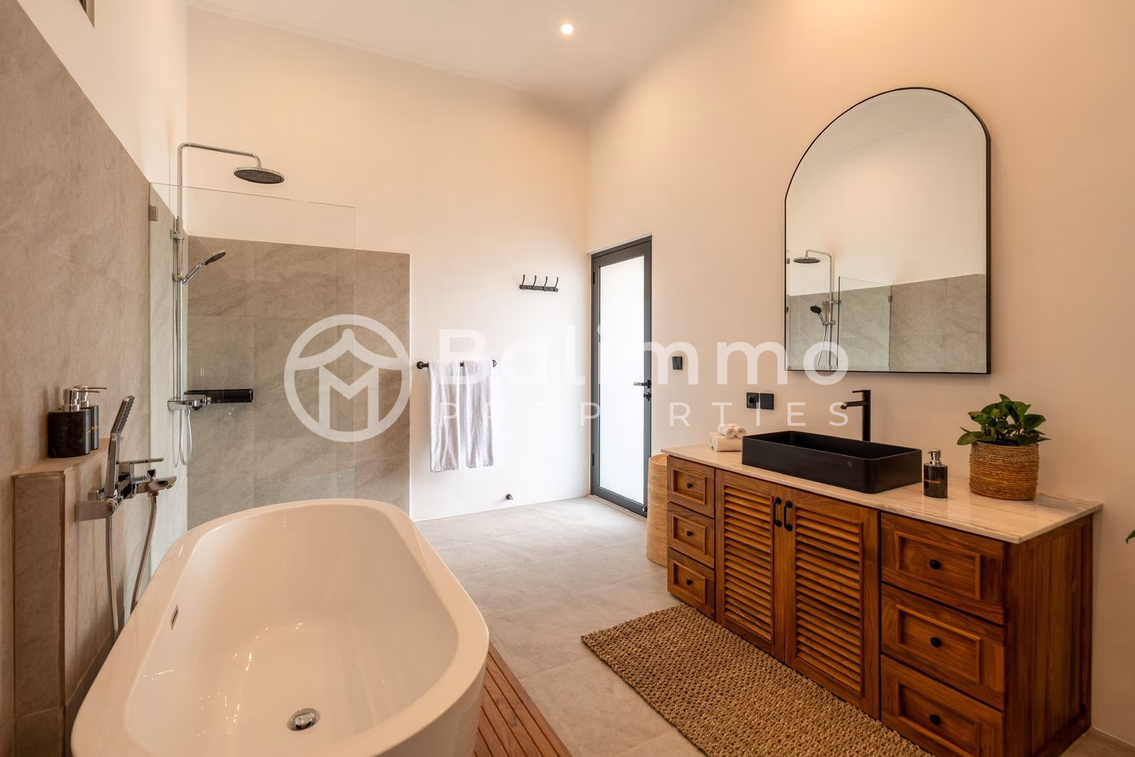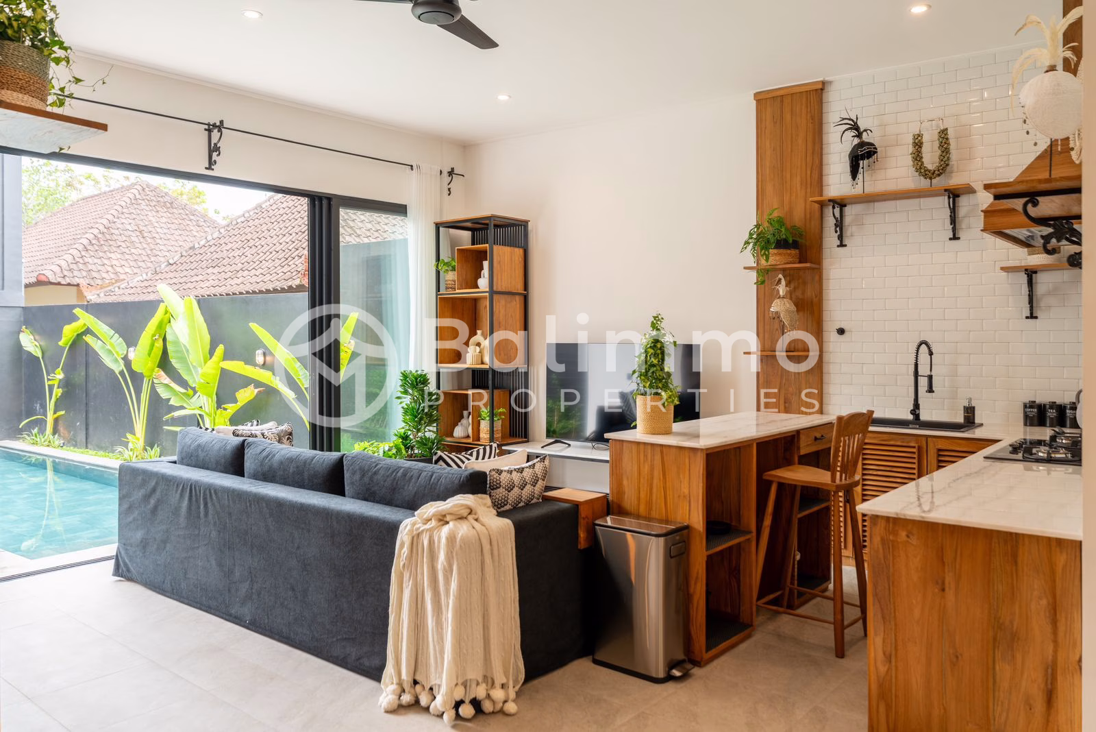 Brand-New Leasehold Villa for Sale – Tumbak Bayuh, Canggu Located in the sought-after area of Tumbak Bayuh, this newly completed modern villa offers both comfort and convenience. The property is just 10 minutes from Pererenan Beach, 20 minutes from Batu Bolong Beach, and 25 minutes from Berawa Beach, with Ngurah Rai International Airport approximately 50 minutes away. The neighborhood is peaceful yet close to popular cafés, restaurants, and international schools in the Canggu area. Built on 130 m² of land, the villa features a sleek modern design with clean lines and functional outdoor spaces. It includes a 3 x 8 m swimming pool, a small tropical garden, and a private parking area suitable for one car and one motorbike. The property also comes with a water filtration system for daily use. Spanning two floors and 180 m² of building size, the villa offers three ensuite bedrooms and three bathrooms. The layout includes a closed living room, a fully equipped kitchen, and a relaxing lounge area with Netflix TV. The villa is fully furnished with modern fittings and offers ample storage space, designed for both comfort and practicality. Additional Information • Leasehold: 37 years • Land size: 130 m² • Building size: 180 m² • Pool: 3 x 8 m • 3 ensuite bedrooms • Closed living room • Fully furnished • Parking for 1 car and 1 motorbike • Storage room and water filter system • Two floors • Modern design Zoning Yellow For Sale Leasehold 37 Year +extance 25 Year Asking Price: IDR 5.500.000.000 BALIMMO PROPERTIES – Contact us to schedule a visit.